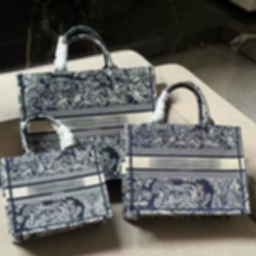 D家2025刺绣包包女帆布老花购物袋大容量通勤手提单肩刺绣新款