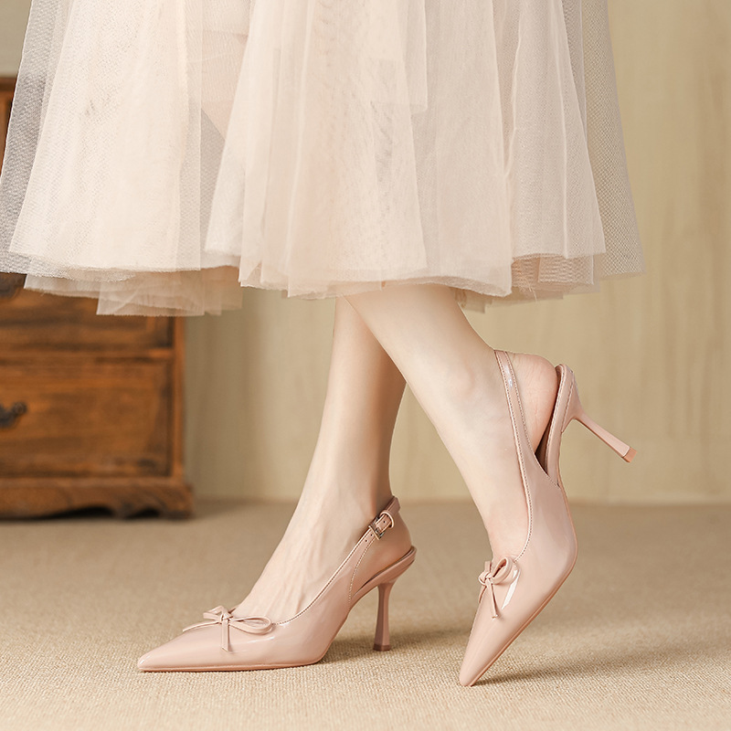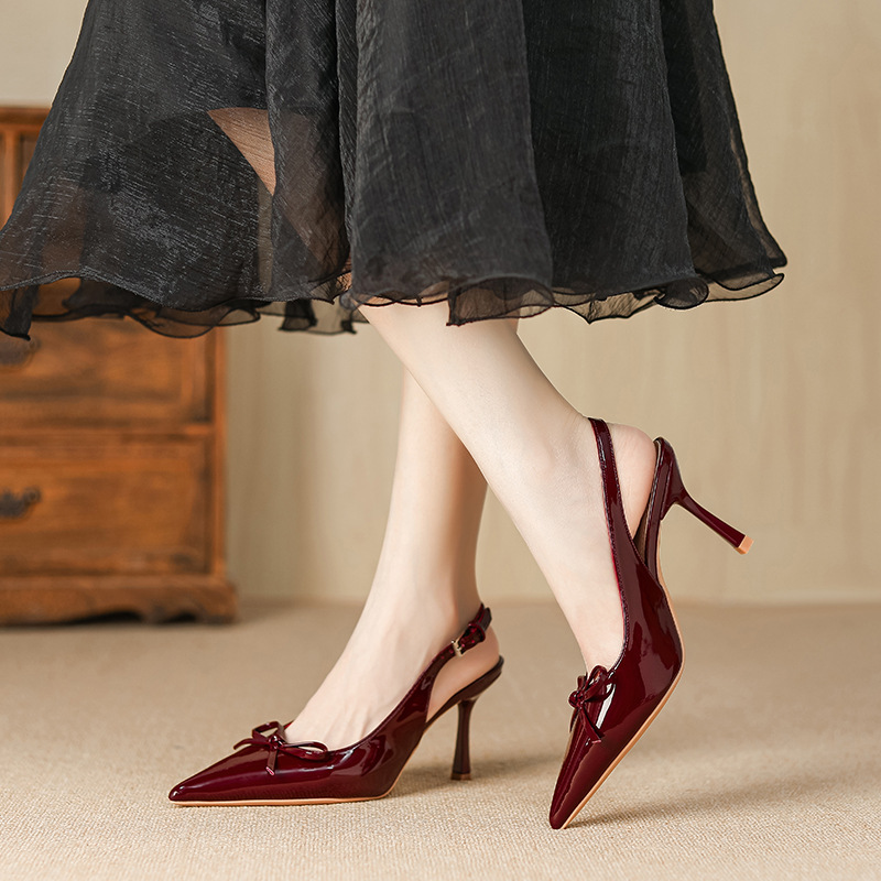 千履汇 高级感法式时尚漆皮高跟鞋淑女风蝴蝶结温柔气质包头凉鞋