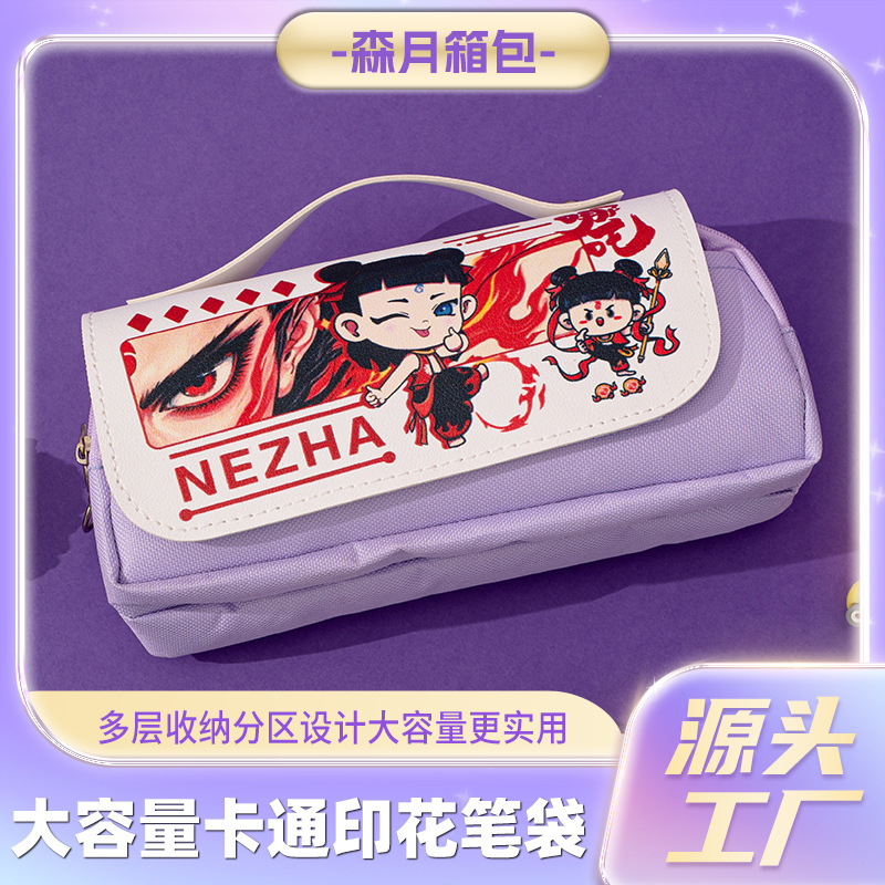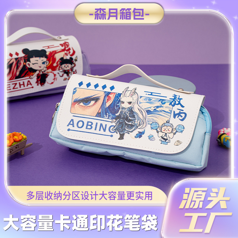 厂家直销小学生大容量卡通文具袋哪吒敖丙潮流二次元手提文具盒