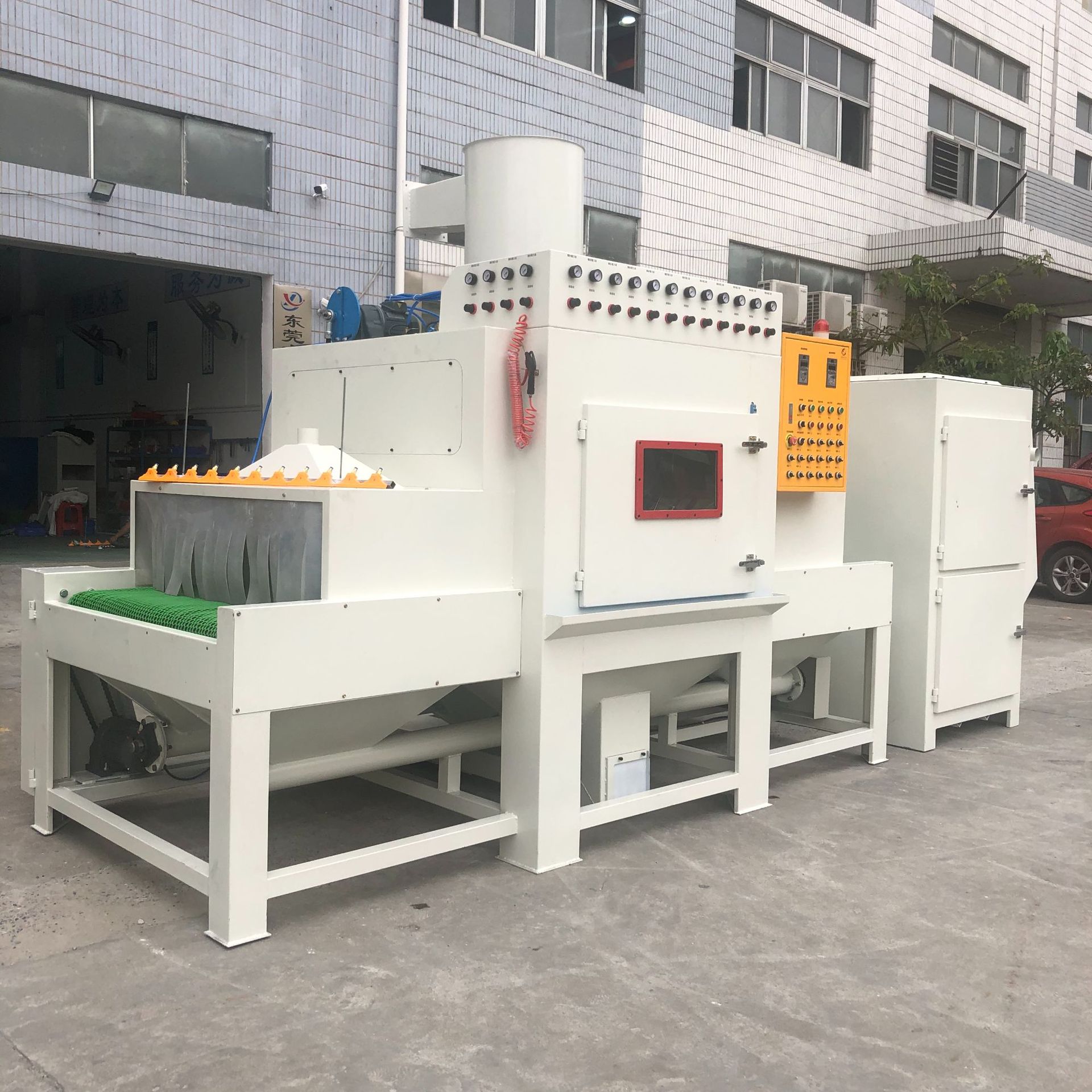 尚宇鑫诚通过输送式自动喷砂机五金玻璃模具除锈去毛边