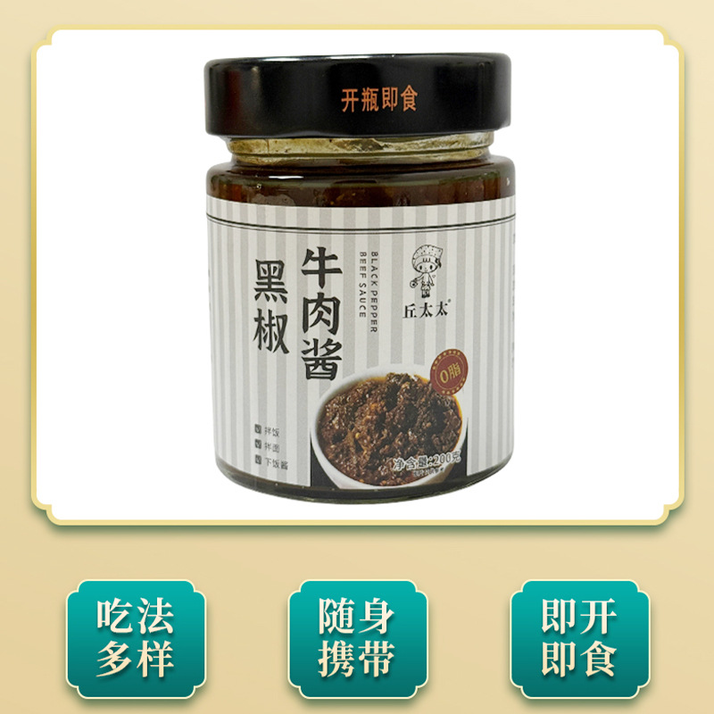 丘太太黑椒牛肉酱牛排肉粒沙拉黑胡椒酱汁拌面调味酱料