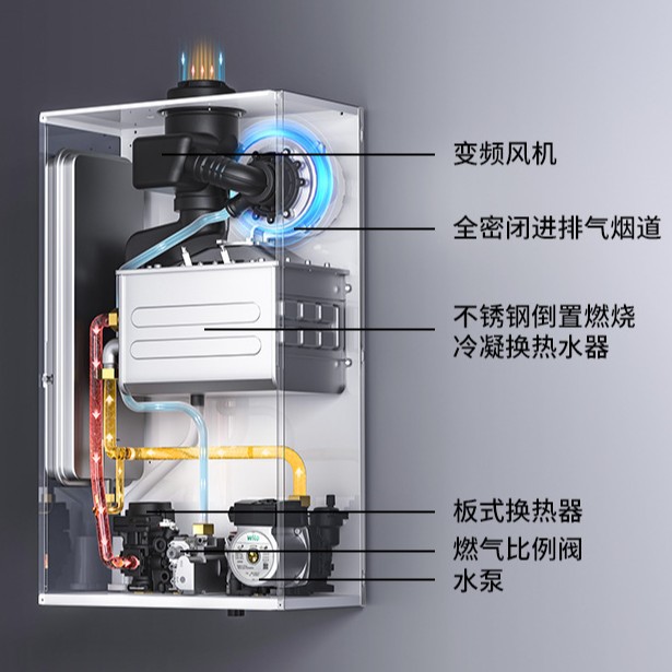 小型热水器不锈钢倒置冷凝炉一级能效全预混冷凝换热器恒温快热式