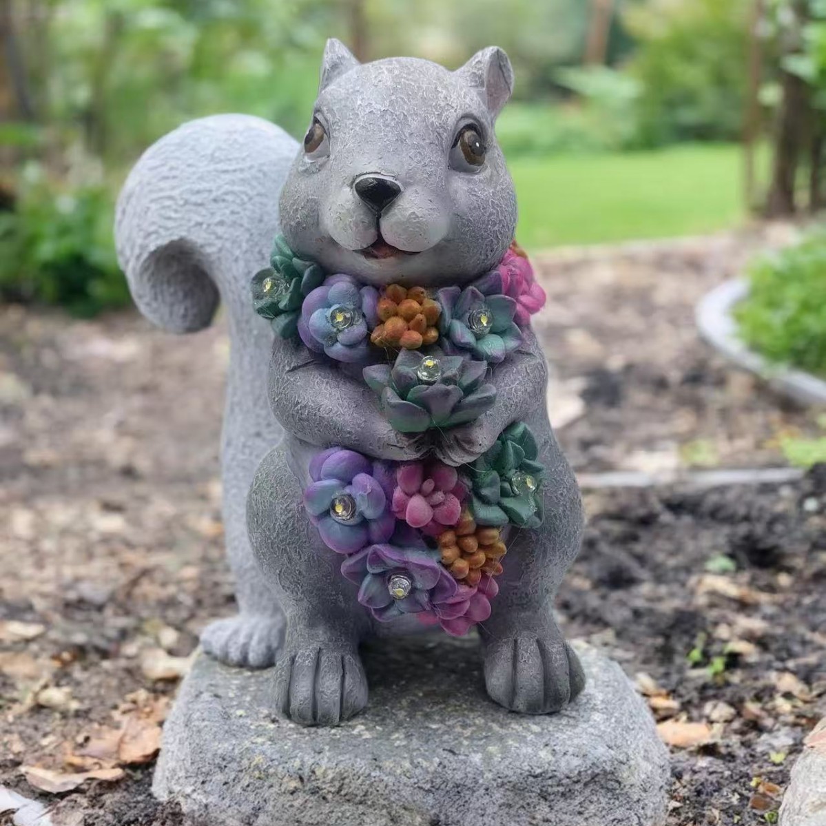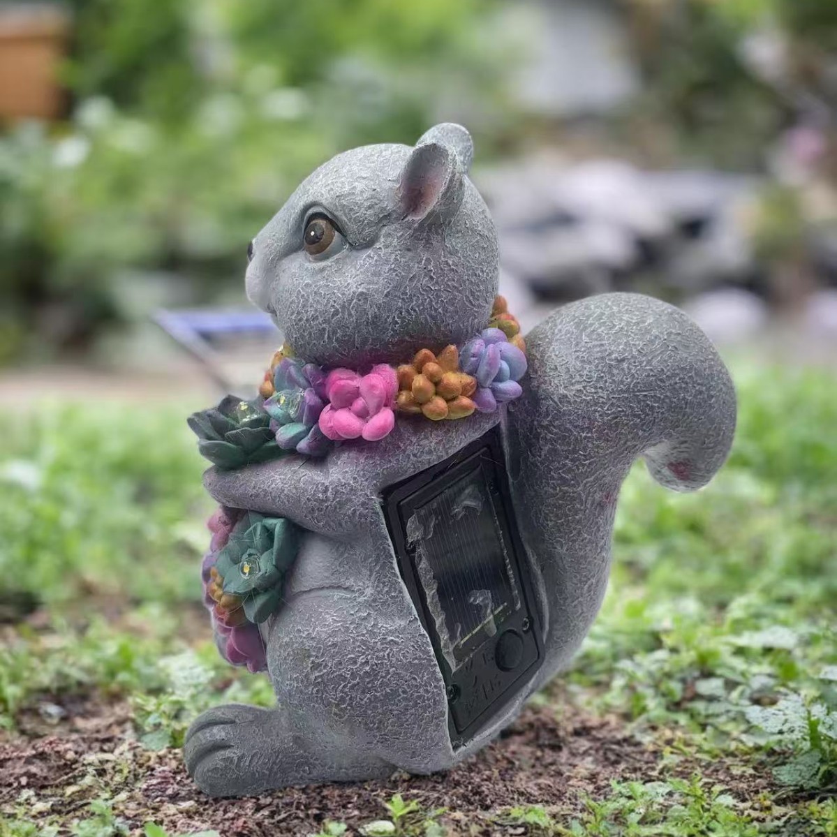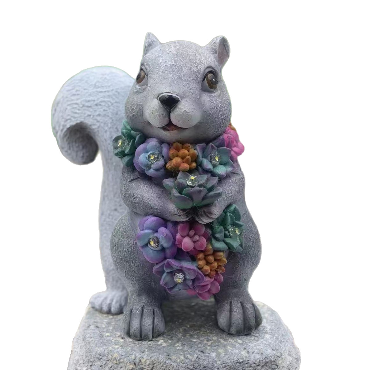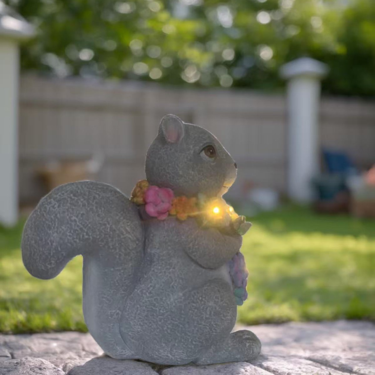 花园树脂松鼠带太阳能7颗LED灯庭院阳台摆件太阳能灯草坪灯萌趣