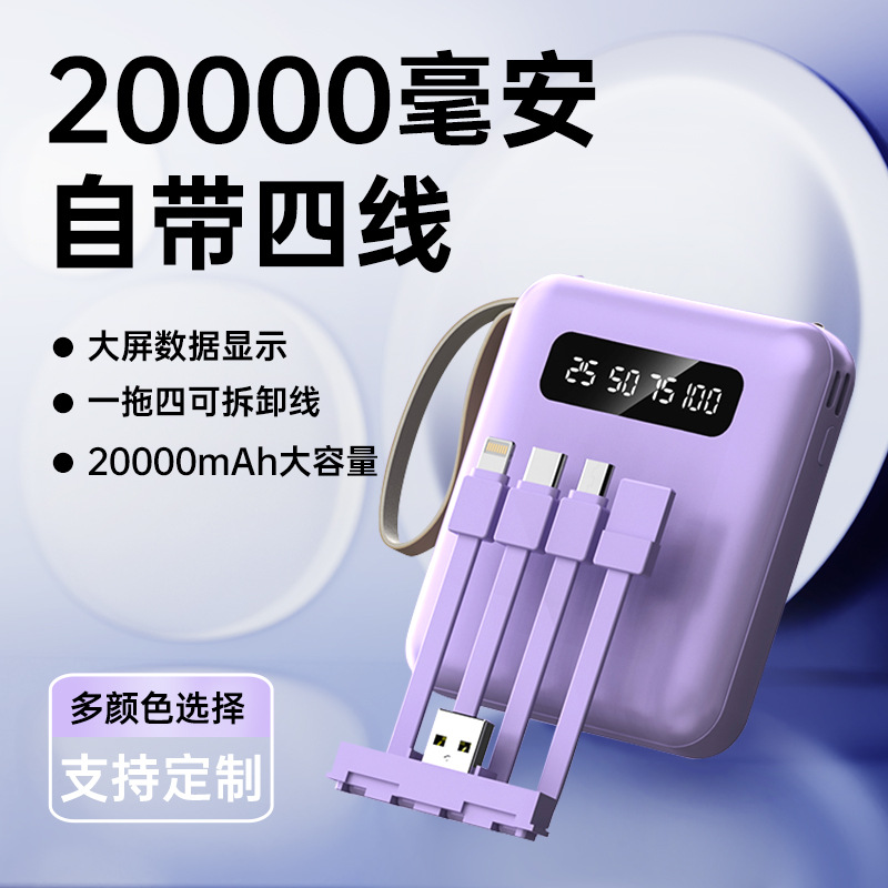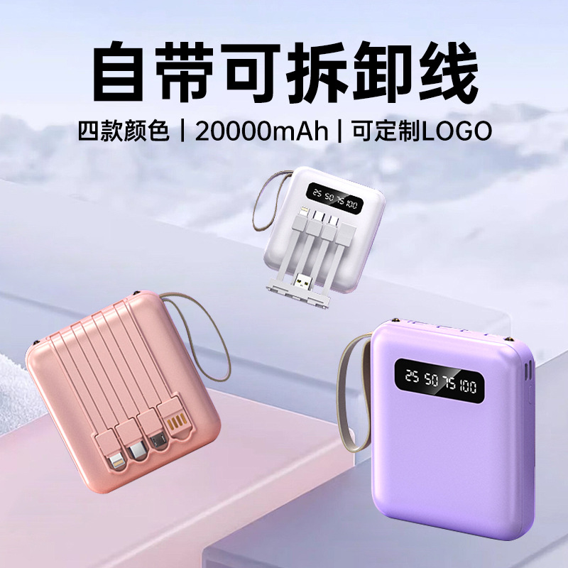 新款便携自带线充电宝 20000毫安3c认证移动电源带挂绳礼品 LOGO