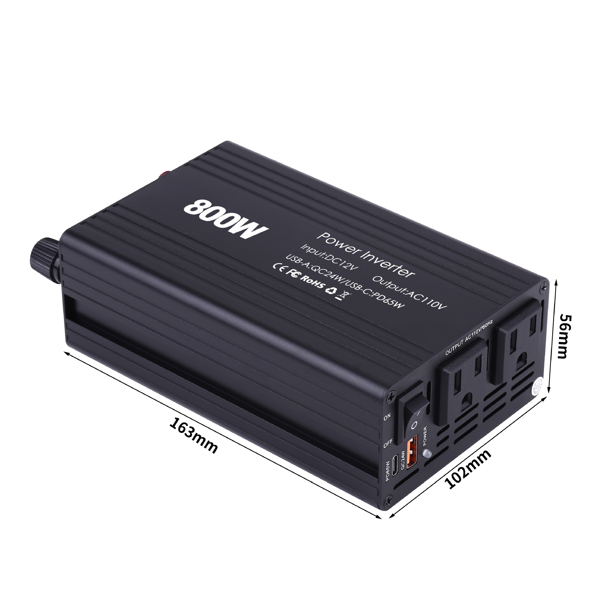 跨境车载逆变器汽车逆变器800w12v110v逆變器车载专用pd65w美规