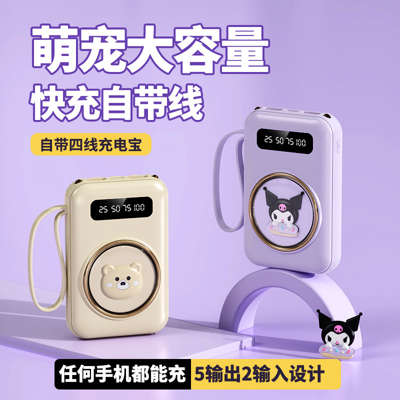 迷你自带线充电宝20000毫安大容量移动电源礼品印 制3c认证批发
