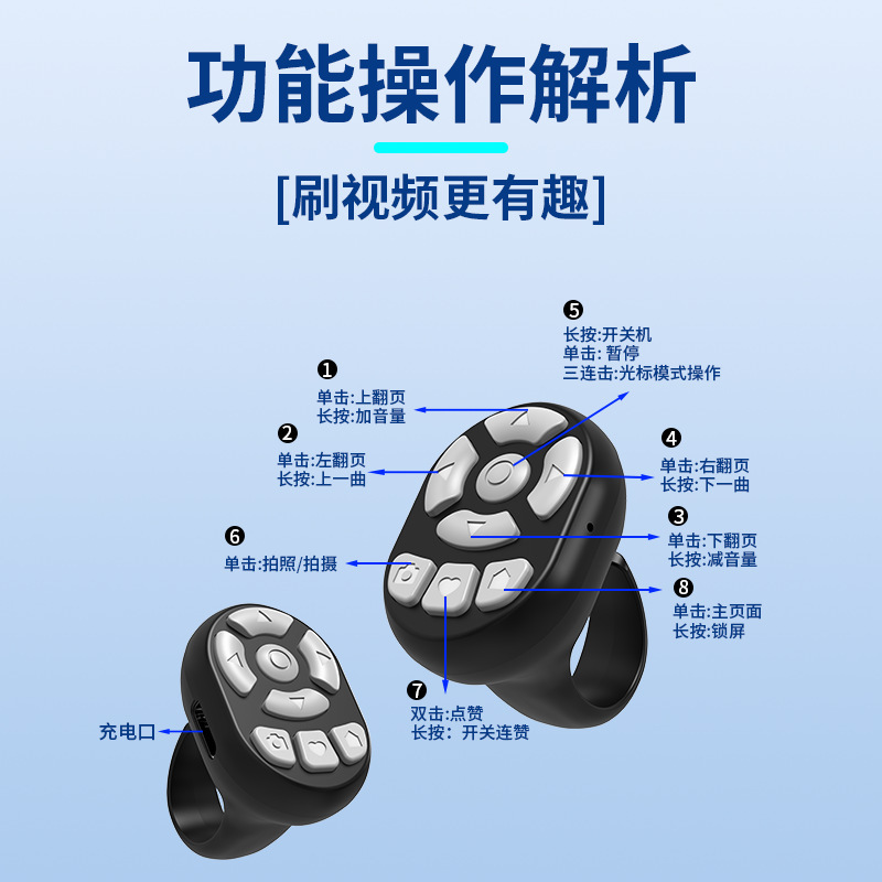蓝牙相机指环遥控器平板手机控制器多功能APP无线小说器抖音