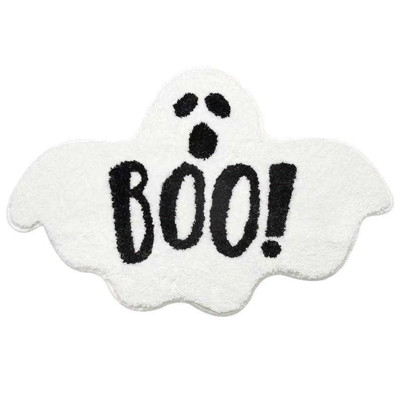 跨境万圣节仿羊绒地垫南瓜骷髅头蝙蝠地毯卧室客厅家居易打理地垫