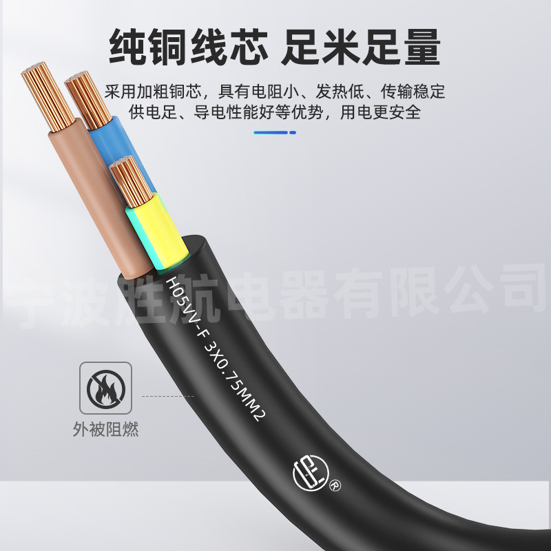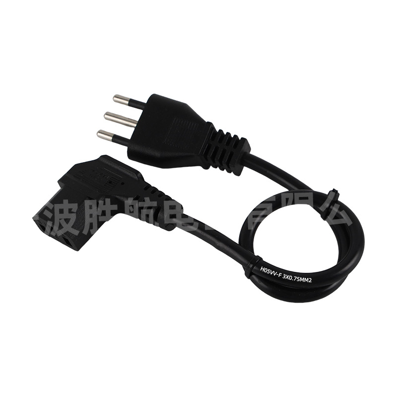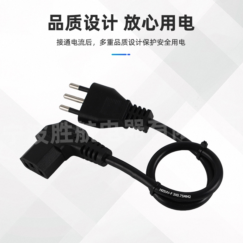 供应 三芯意大利插头线 3X0.75MM2X1米C13弯头品字尾插头线