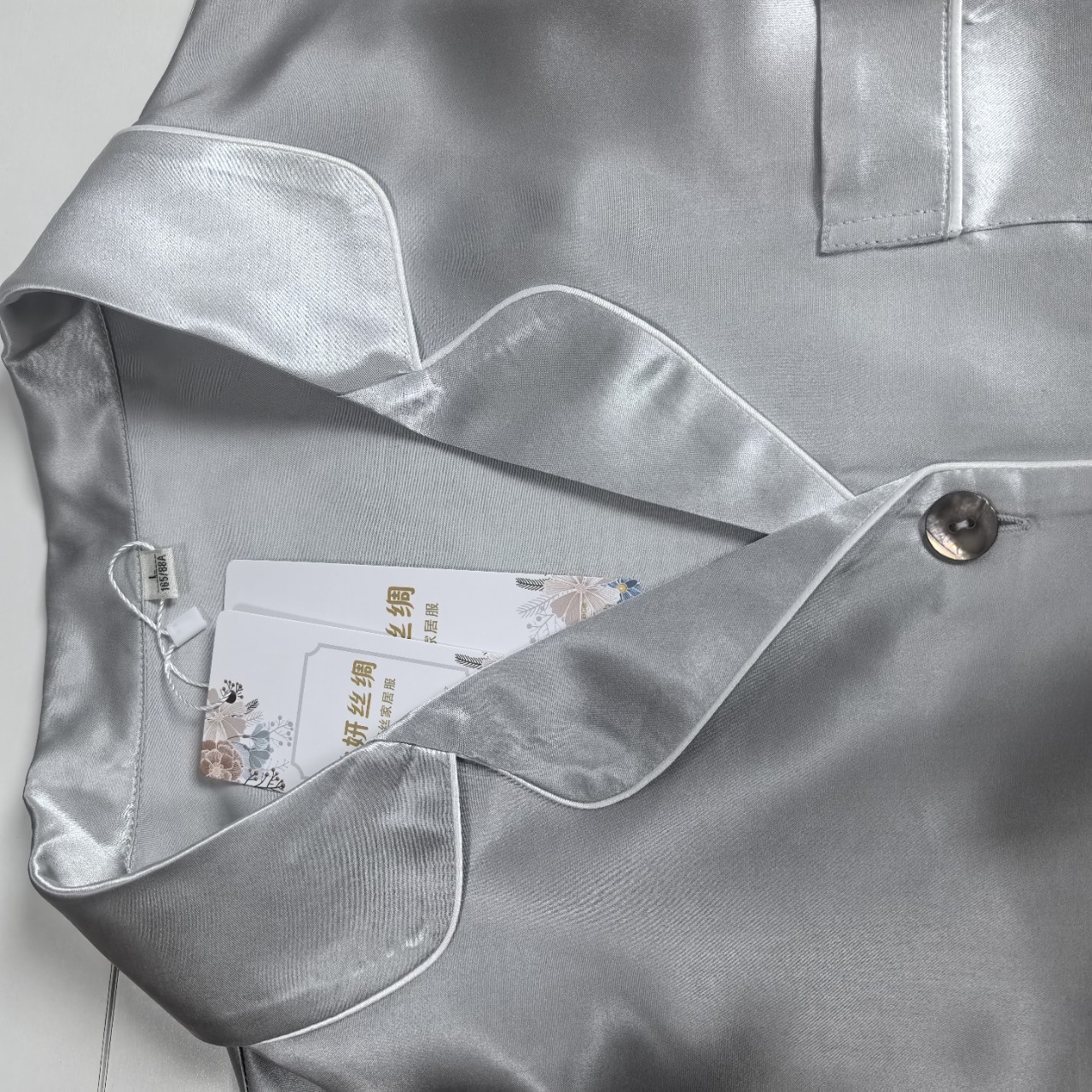 夏季女士真丝睡衣短袖短裤两件套薄款装桑蚕丝绸家居服可代发轻盈