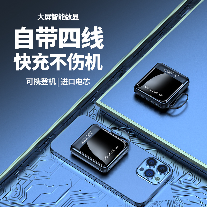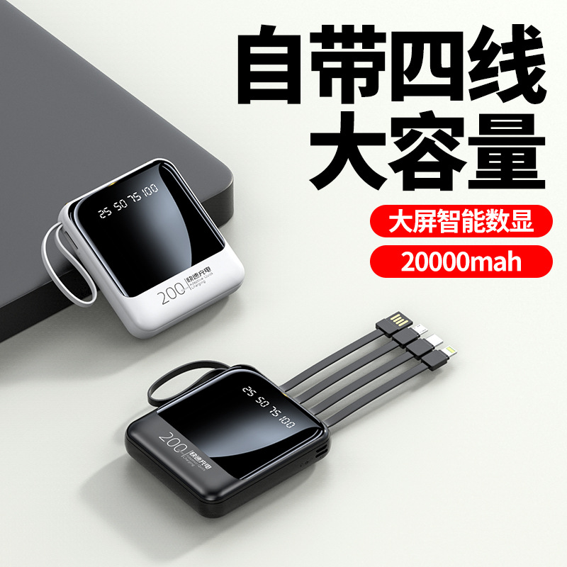 3c认证新款充电宝批发便携镜面20000毫安移动电源带挂绳礼品印制