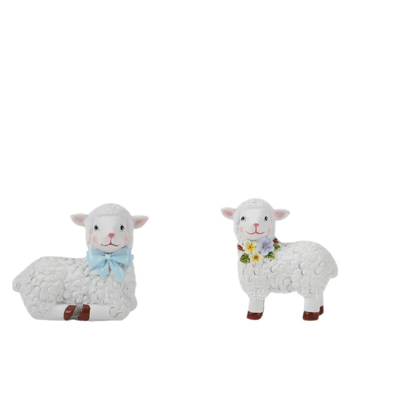 跨境新款创意树脂工艺品可爱小绵羊农场雕像庭院花园家居桌面装饰