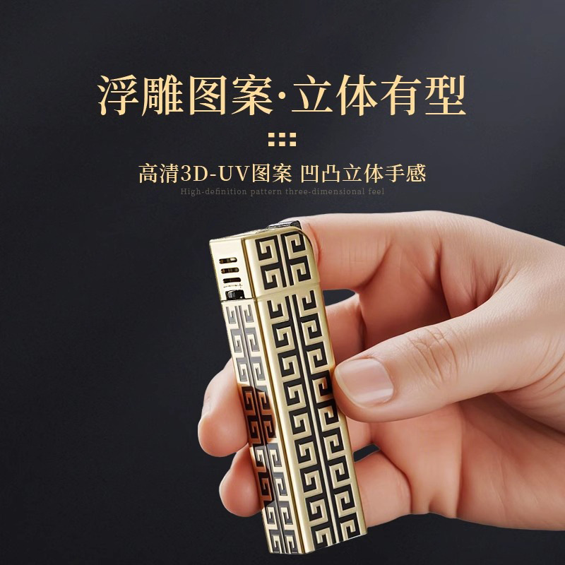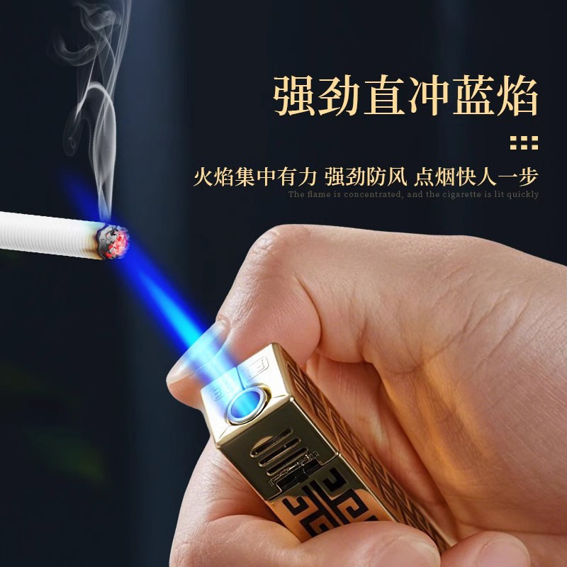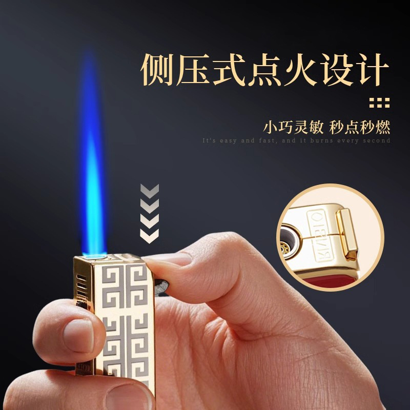 创意大金条金属防风打火机新耐用可充气高颜值复古铜色直冲打火机