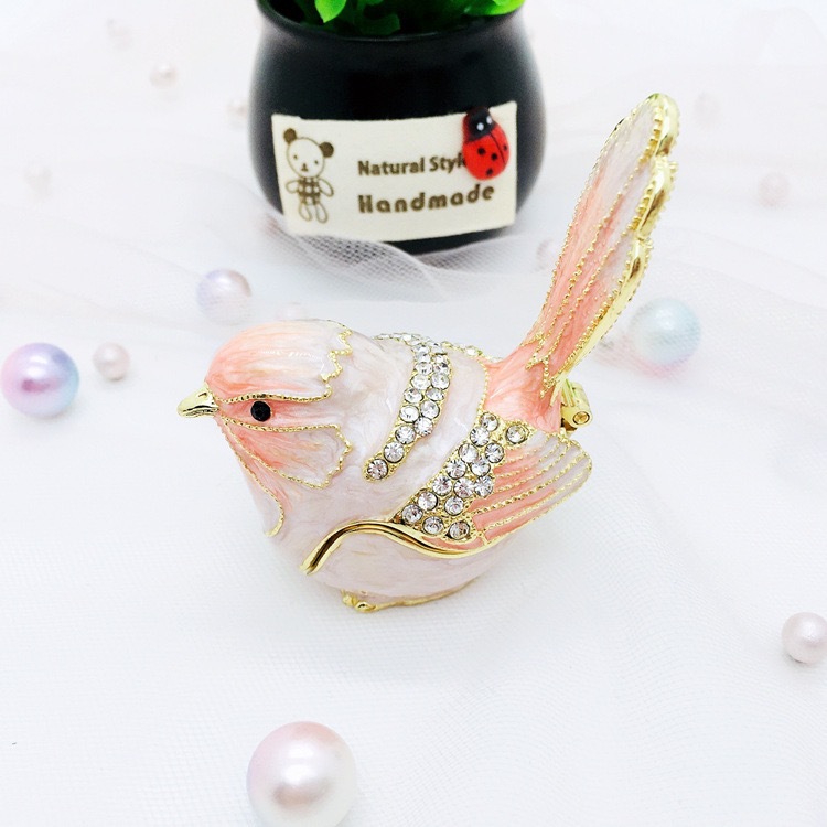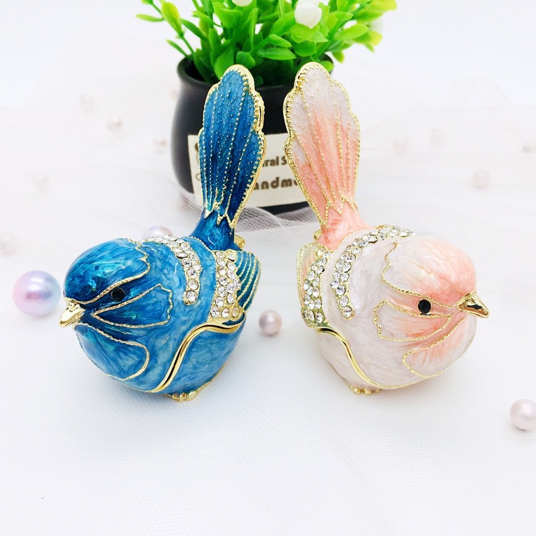 创意摆件小鸟首饰盒金属珐琅彩创意戒指项链耳环收纳盒结婚姻