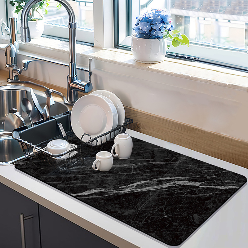 轻奢大理石纹厨房沥水垫台面硅藻泥吸水垫桌面餐具干燥垫防滑杯垫