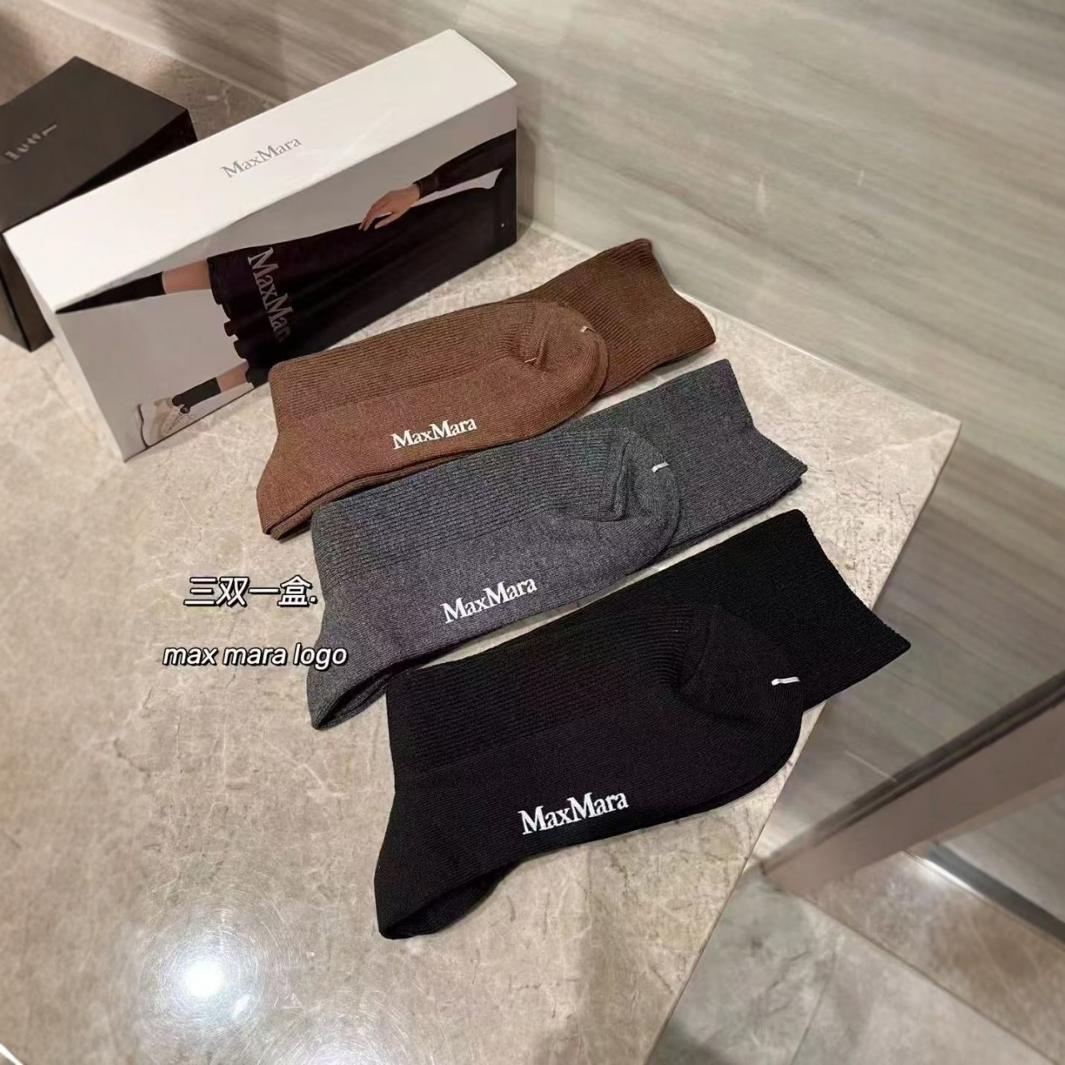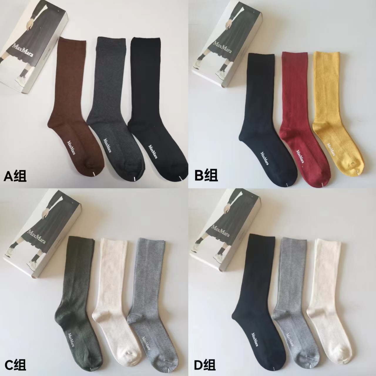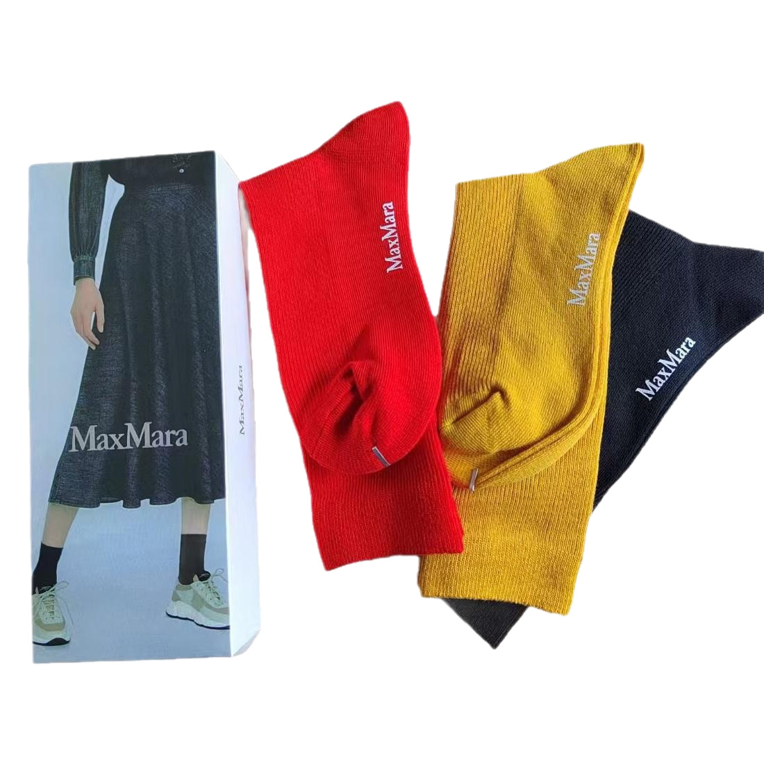 Max盒装3双装外贸意大利纯色双针坑条棉袜子小腿mara轻奢潮袜潮流