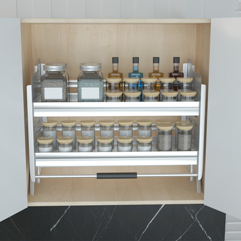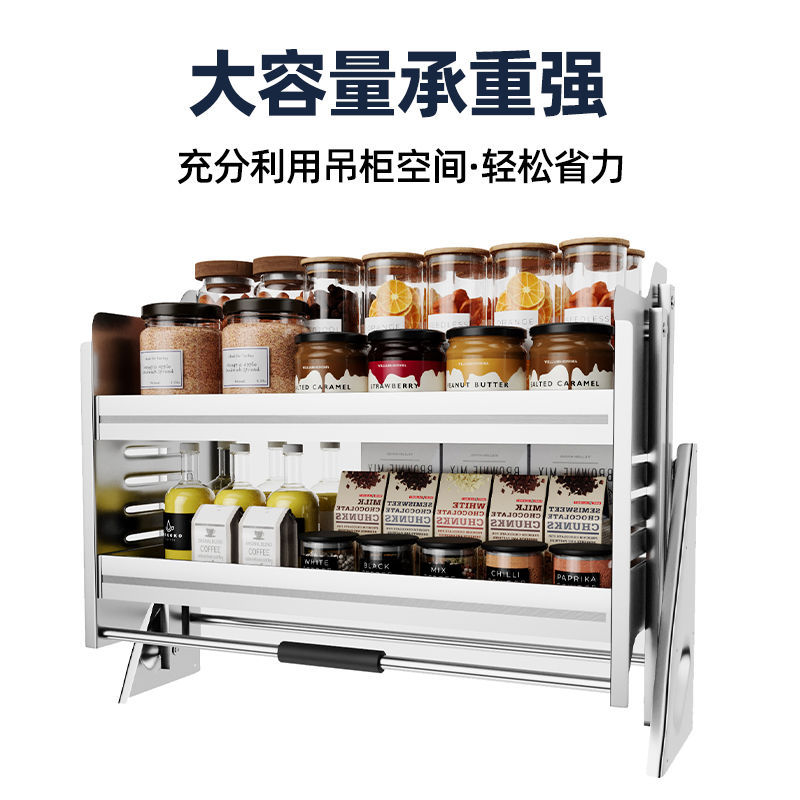 厨房吊柜升降拉篮 上下拉式双层置物架 橱柜开门缓冲太空铝调味篮
