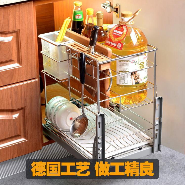 厂家直销不锈钢厨房拉篮 橱柜刀架拉篮三层调味拉篮 批发刀架