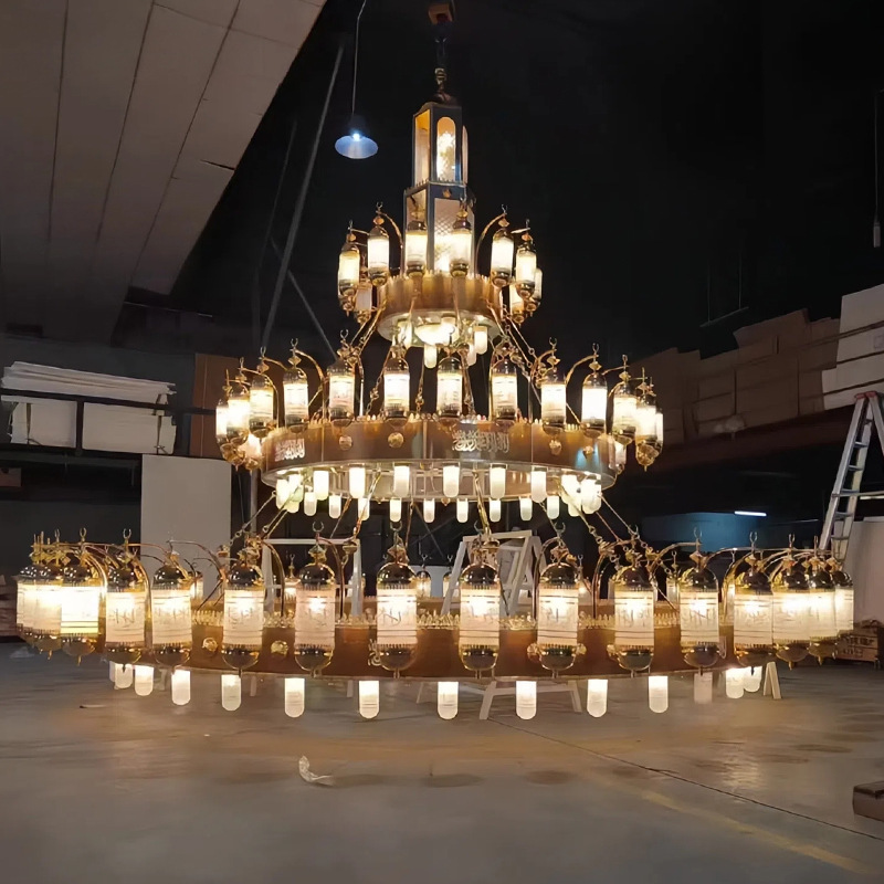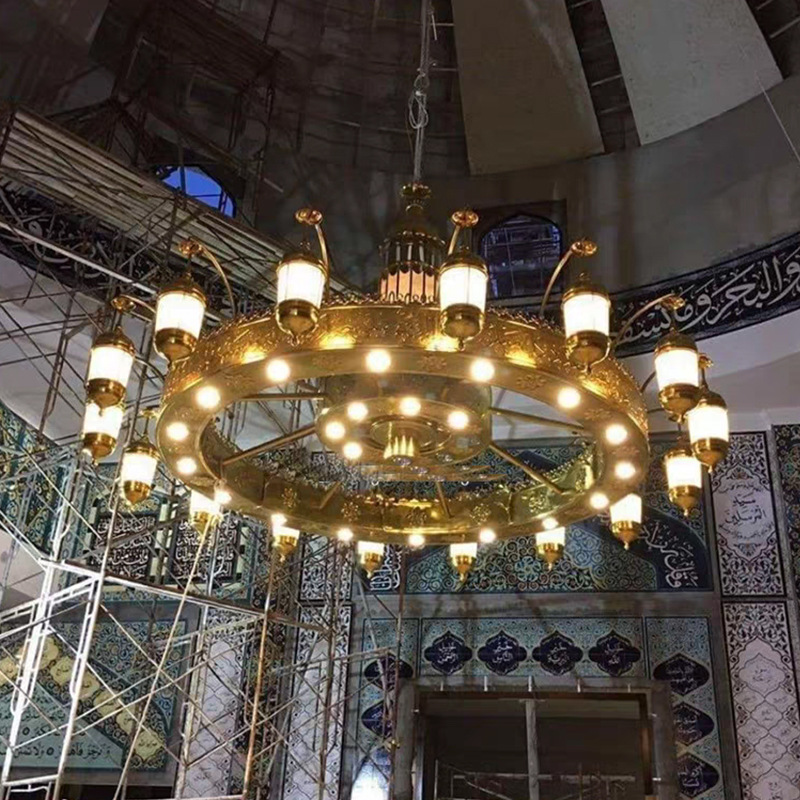定制阿拉伯清真寺伊斯兰大型豪华金清真寺照明教堂金色大吊灯