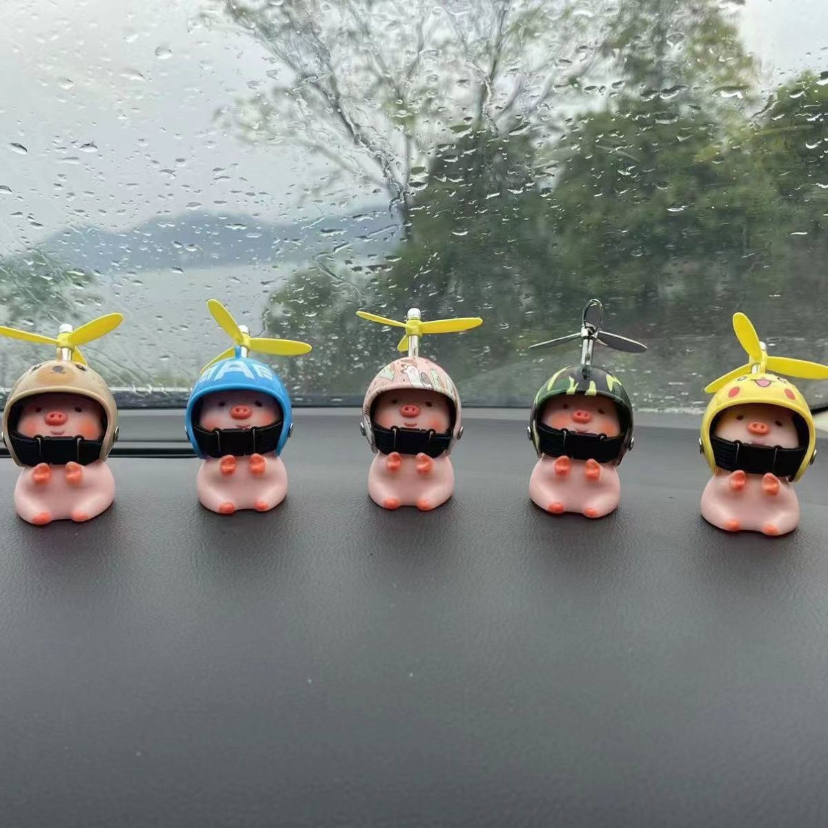 电动车摆件车载卡通小猪装饰品自行车柯基可爱配饰皮卡丘头盔蜻蜓