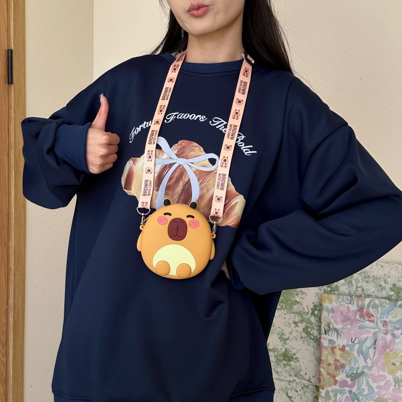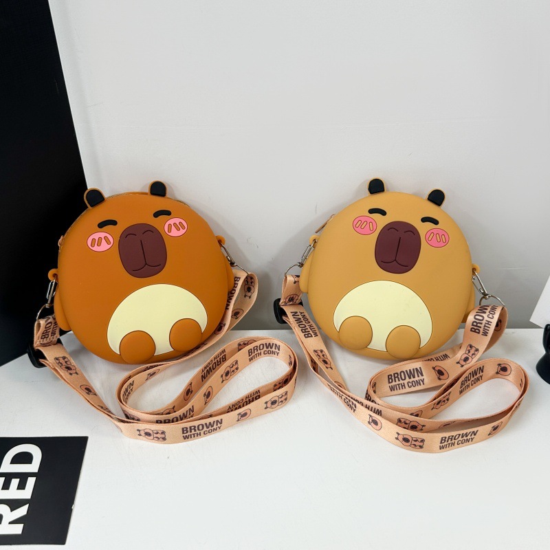 儿童斜挎包超萌可爱小水豚大小包男女童卡皮巴拉公仔硅胶零钱包包