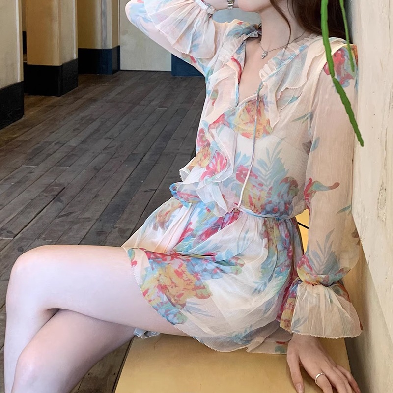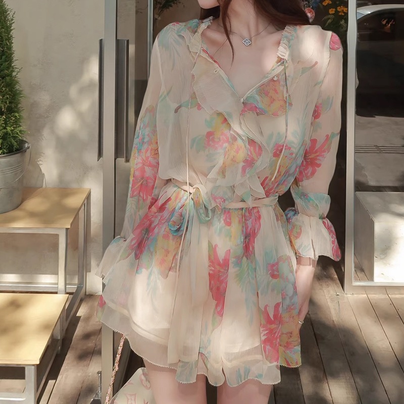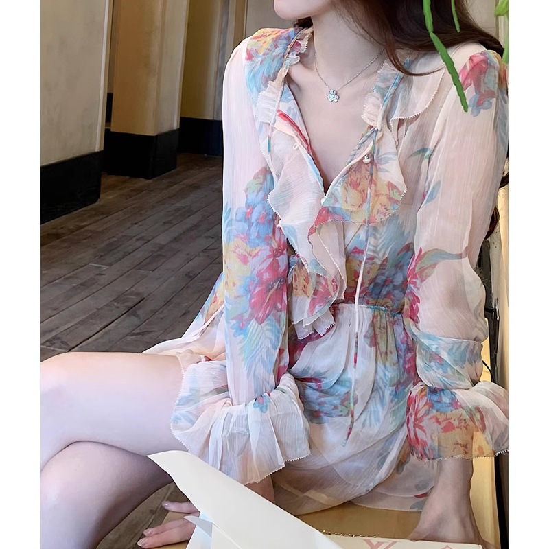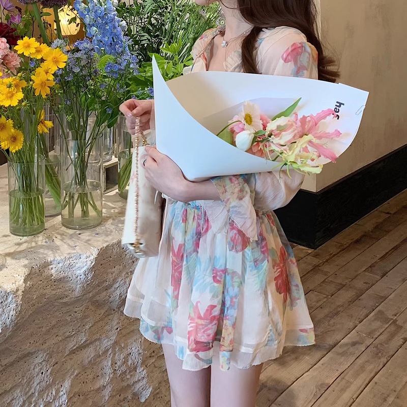 女款夏 人比花娇 春夏清透美艳显白碎花连衣裙女法式气质收腰短裙