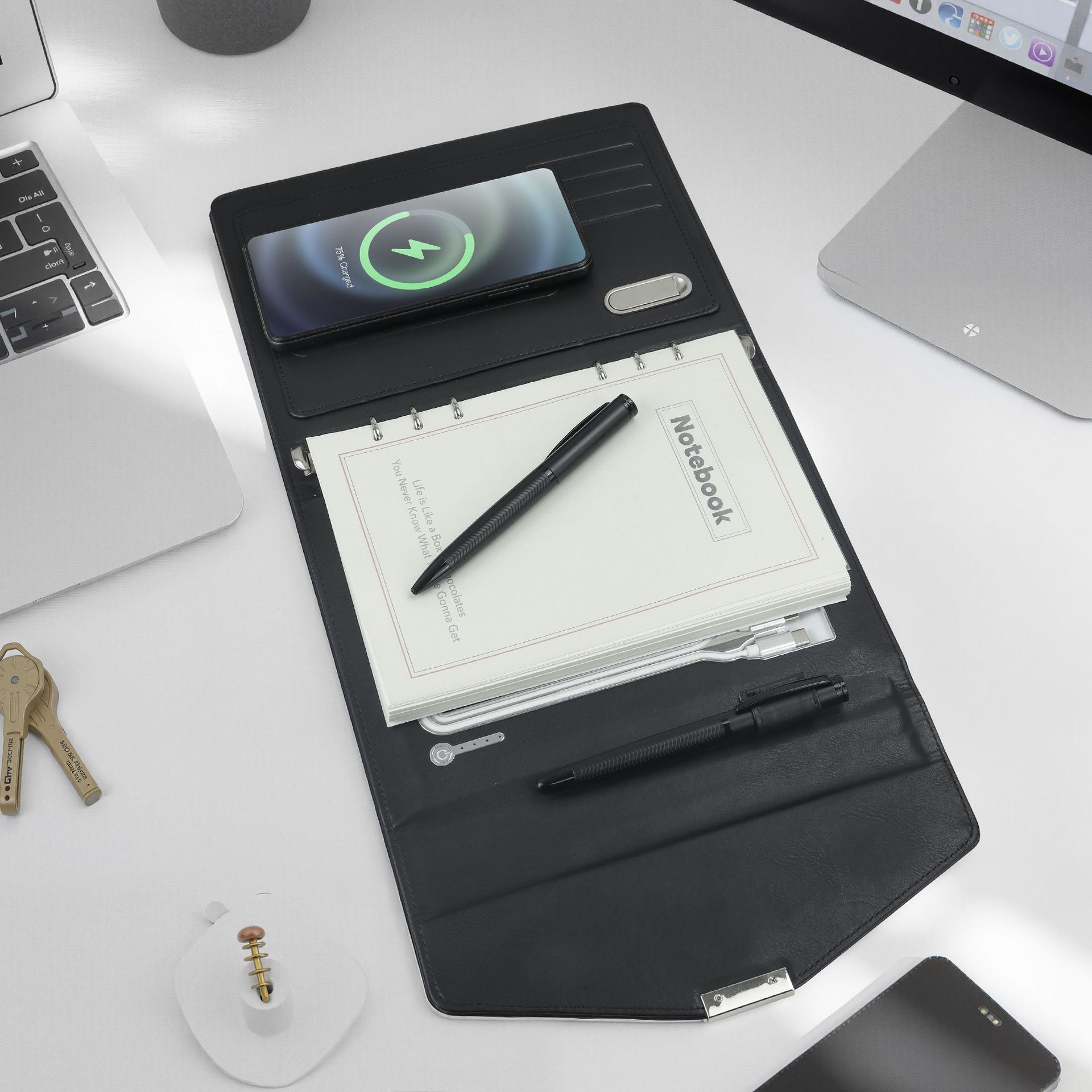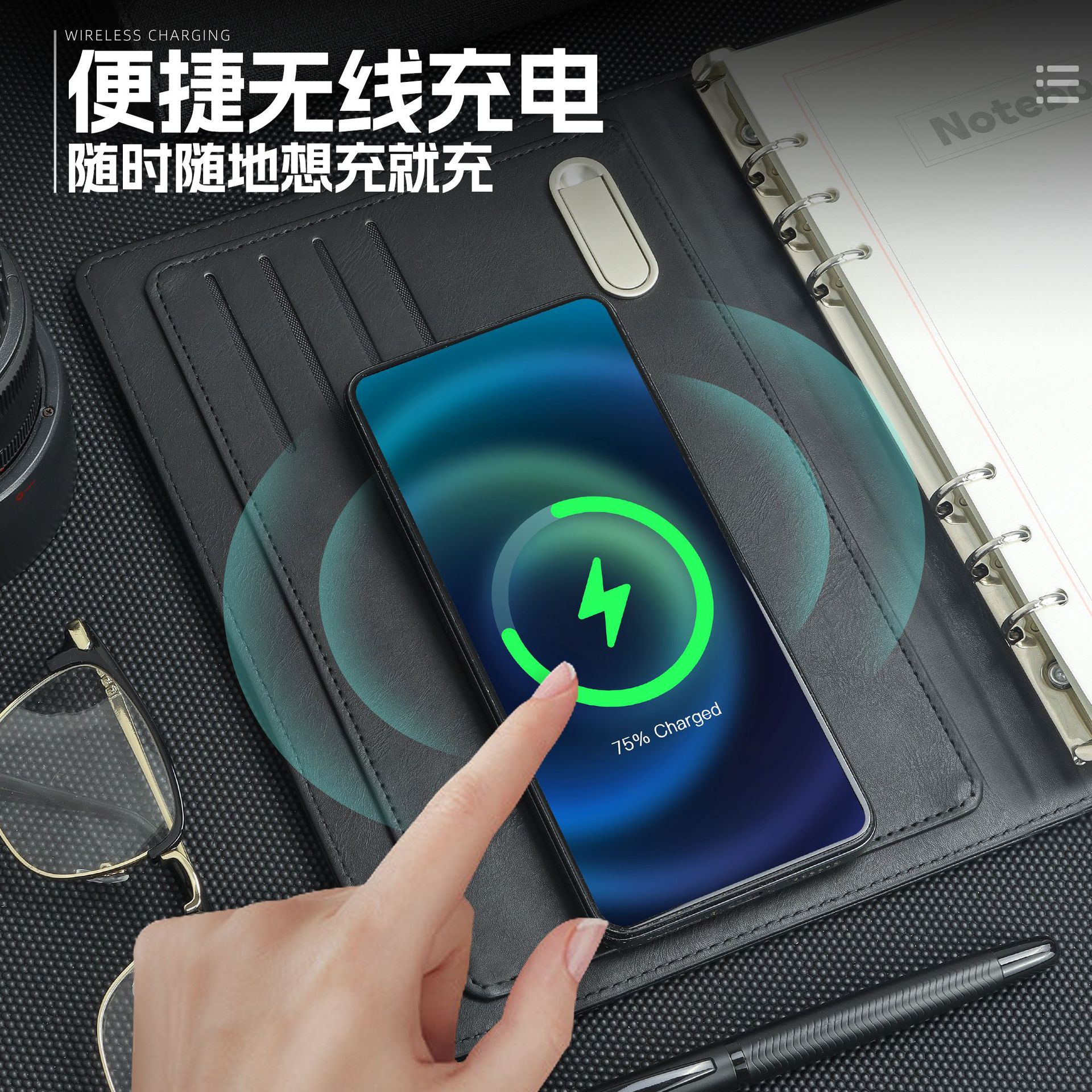 无线充电笔记本订购套装移动电源记事本带u盘商务活页本可印logo