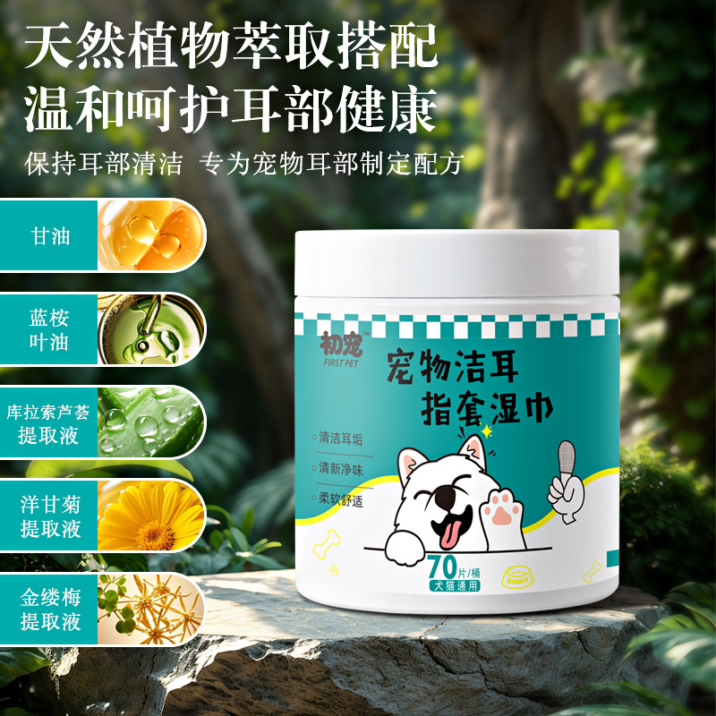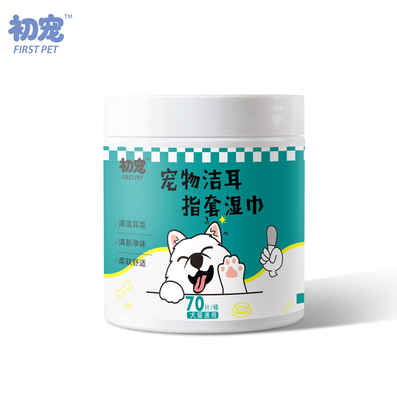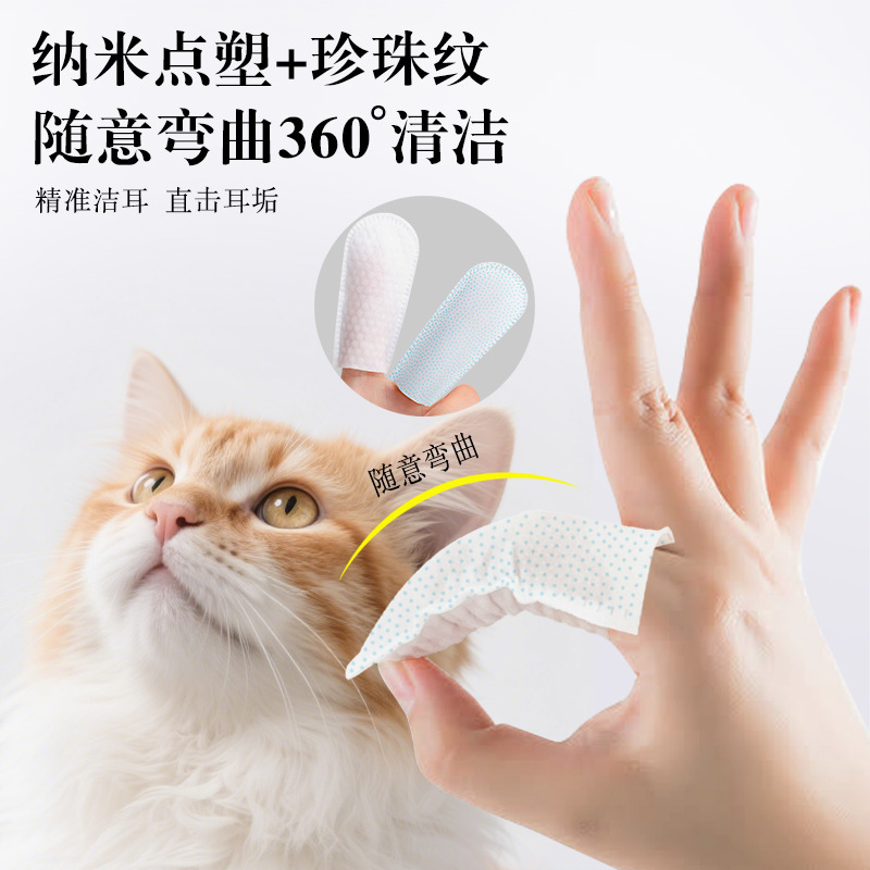 跨境宠物耳朵手指套70片狗狗猫咪耳部清洁除耳垢污垢猫耳道湿纸巾