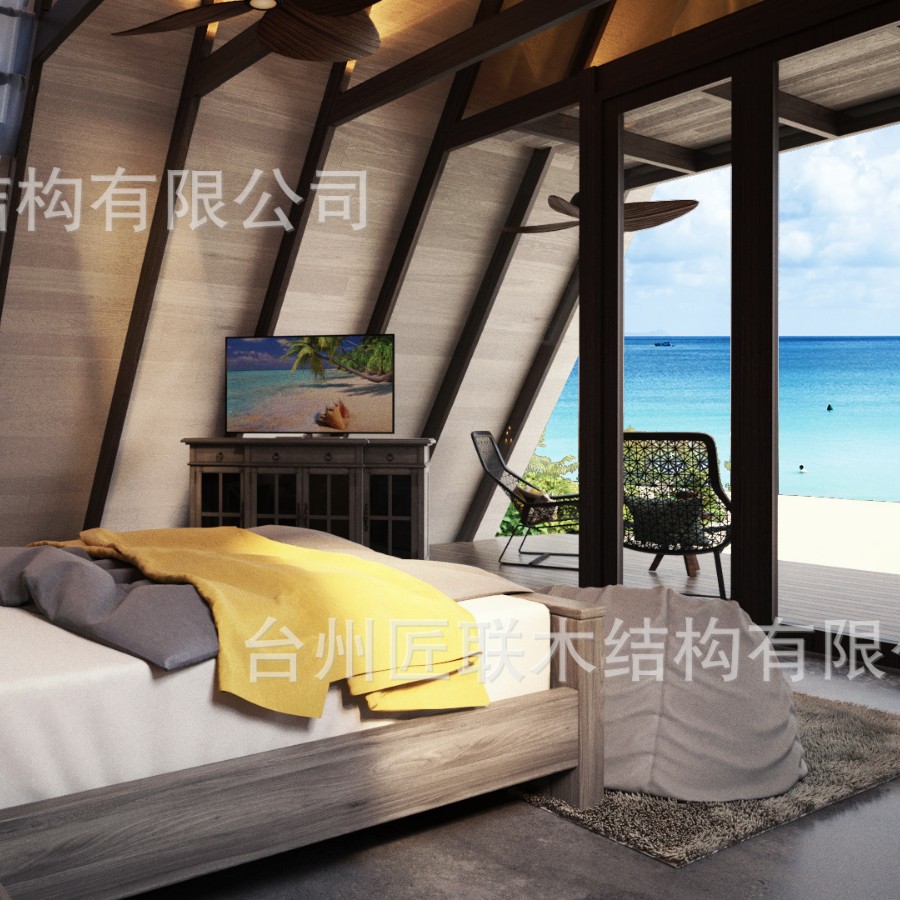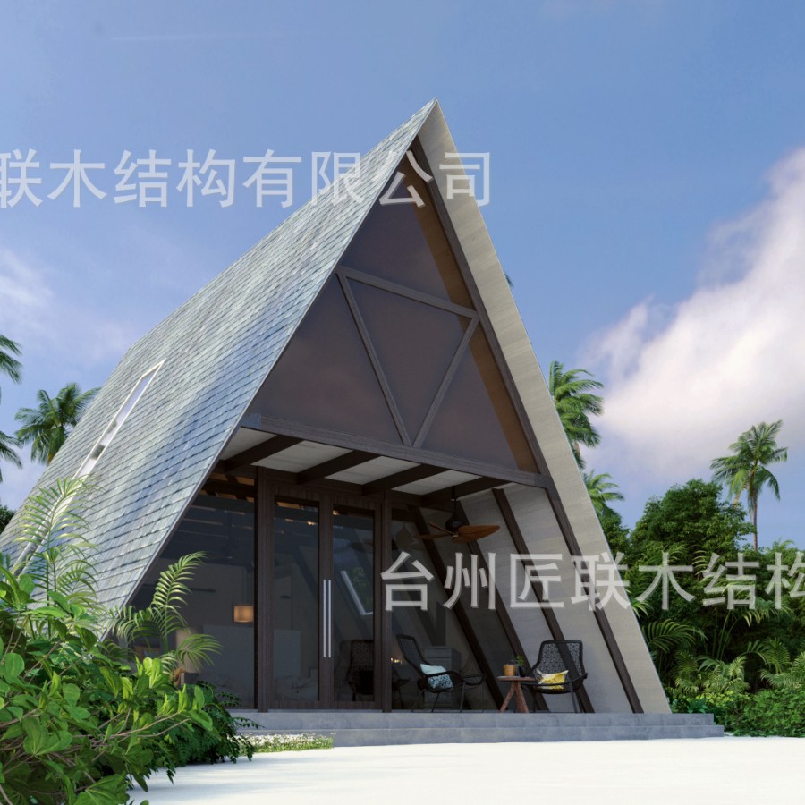 马尔代夫度假实木三角木屋 建造景区度假木结构三角木屋民宿