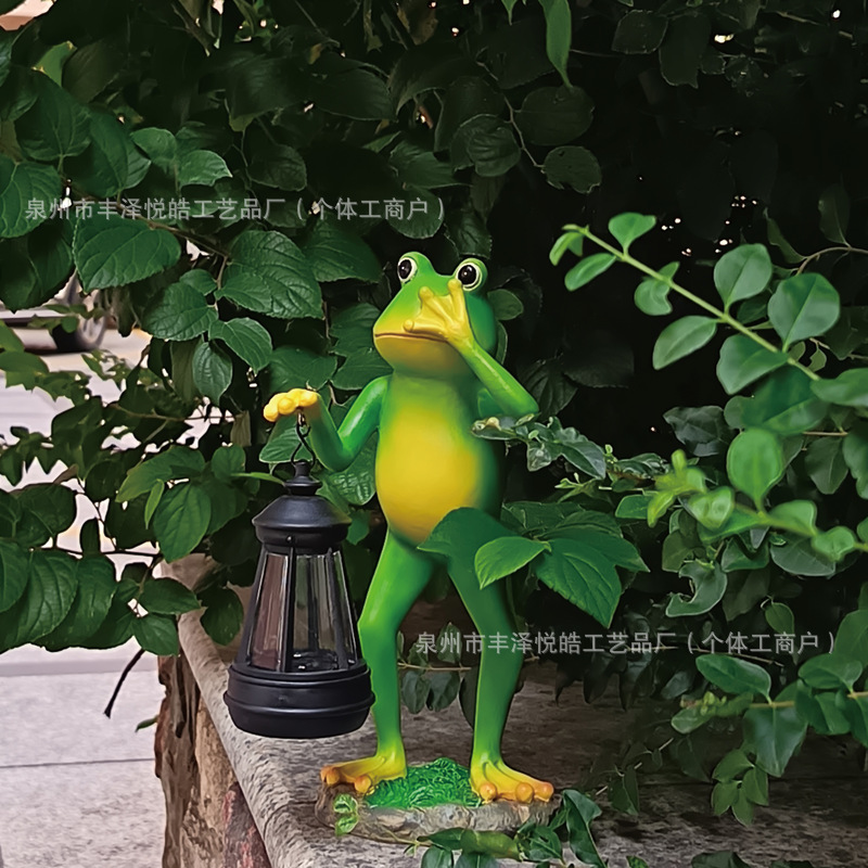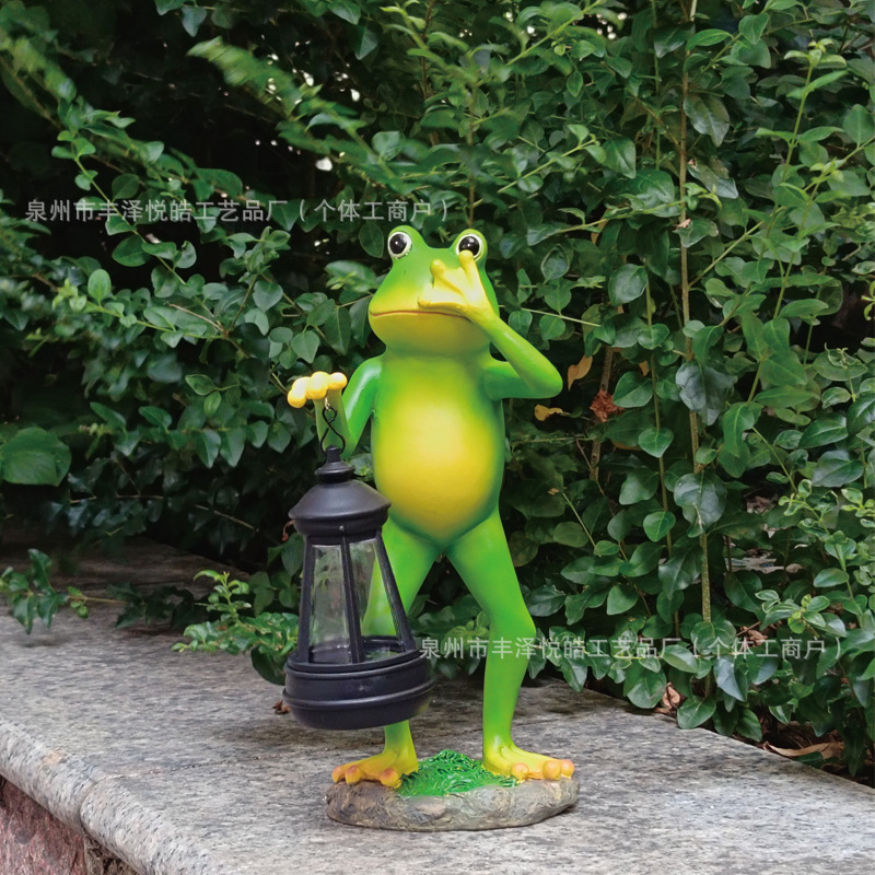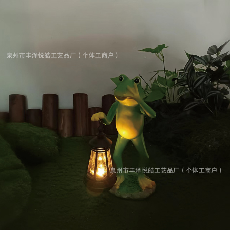 跨境户外花园太阳能灯青蛙摆件庭院创意装饰发光树脂工艺品微景观