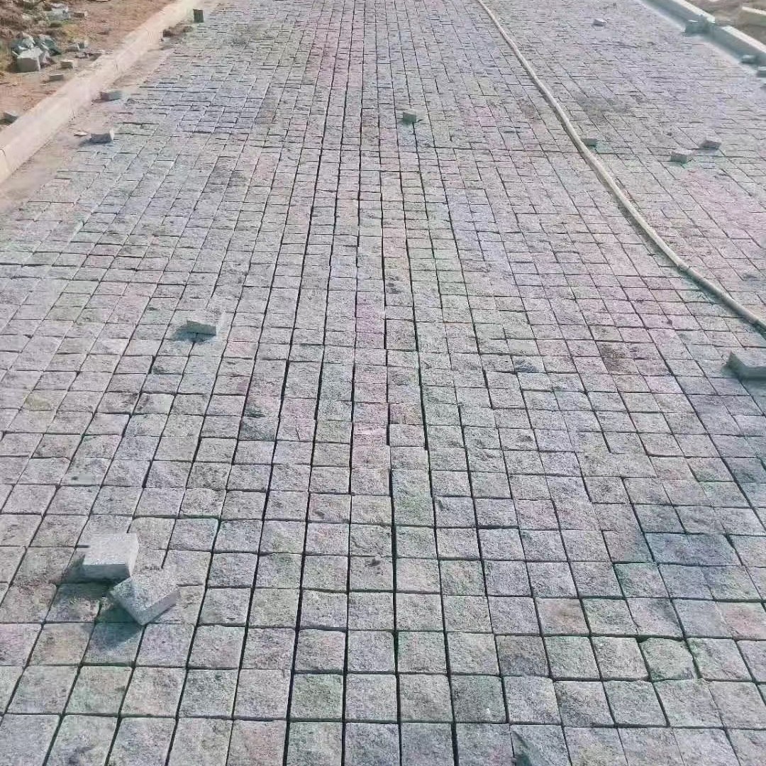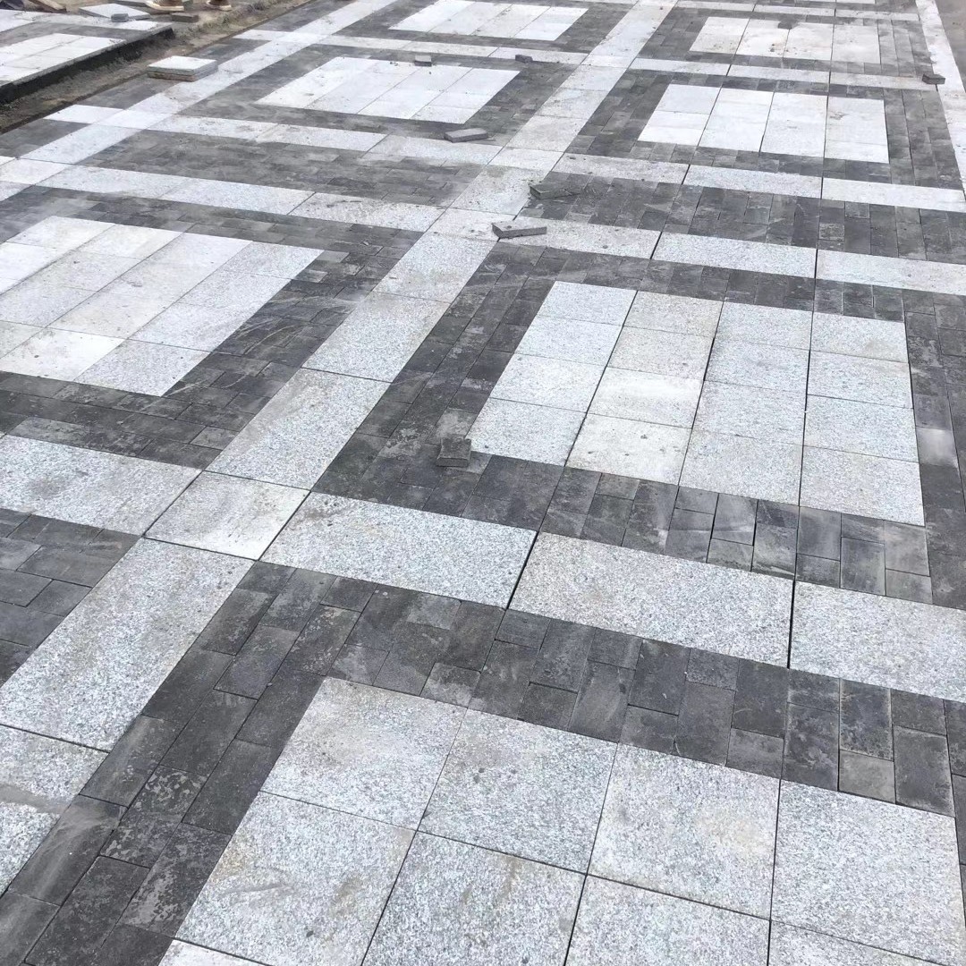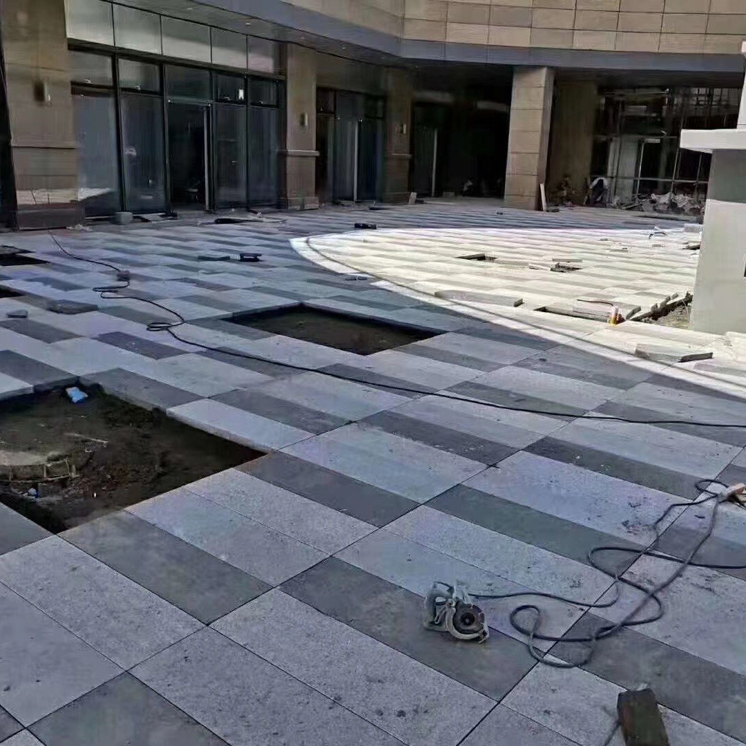 花岗岩地铺石材 芝麻白灰火烧板庭院广场公园地铺石人行道盲道板