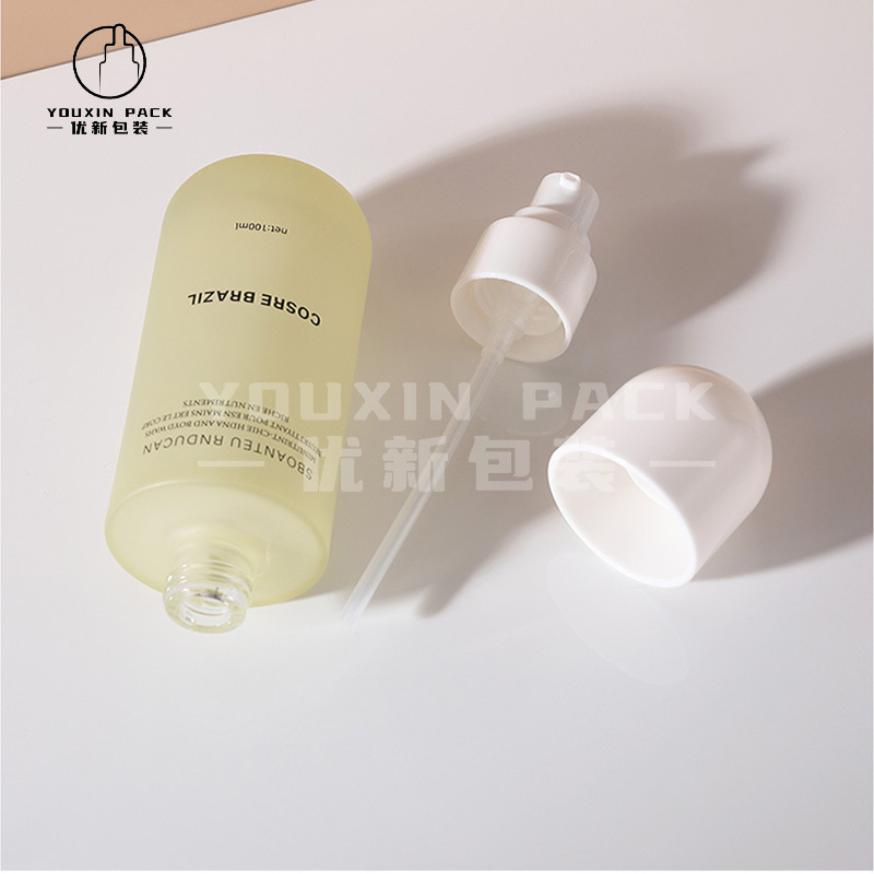 现货直圆盖150ml透明玻璃化妆护肤按压粉底乳液分装套装瓶批发