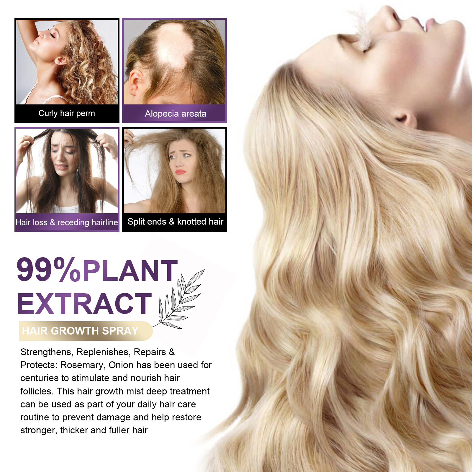 EELHOE 洋葱迷迭香头发喷雾 滋润头皮柔顺光泽秀发护发喷雾
