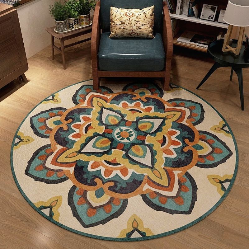 圆形客厅波西米亚风地垫厂家批发家用复古客厅卧室床边毯仿羊绒毯