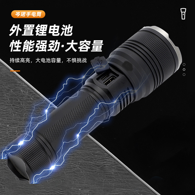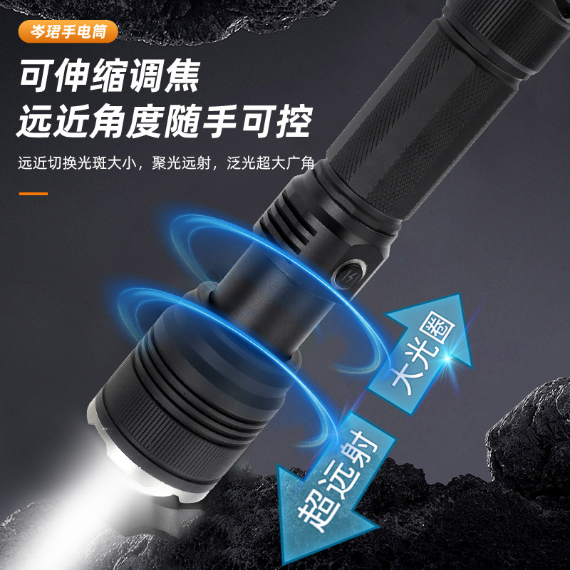 新款跨境爆闪强光远射镭射激光炮手电筒大容量长续航led户外探洞