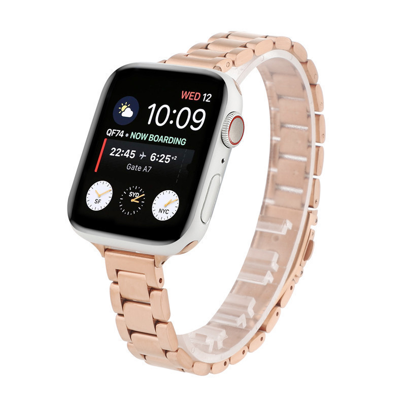 新款适用苹果不锈钢手表带apple Watch三珠实心小蛮腰修身钢带