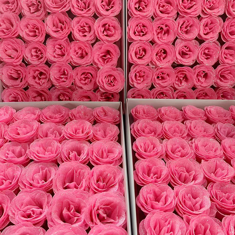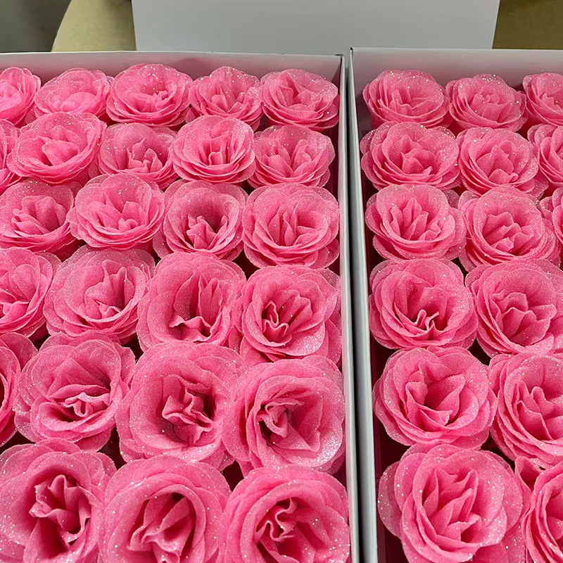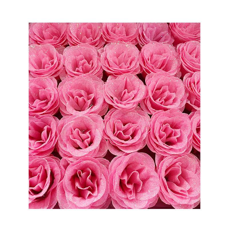 现货批发粉色金粉闪光玫瑰花头酒店婚礼布置仿真永生亮片玫瑰花