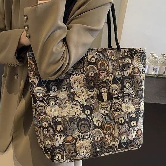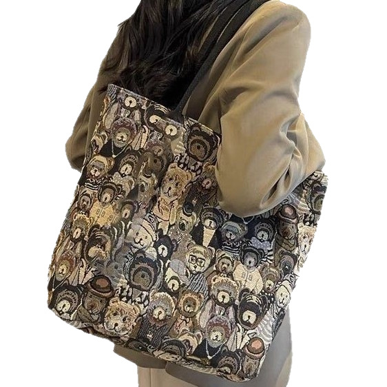 休闲大容量小熊帆布包新款2025托特包包通勤大包单肩手提包