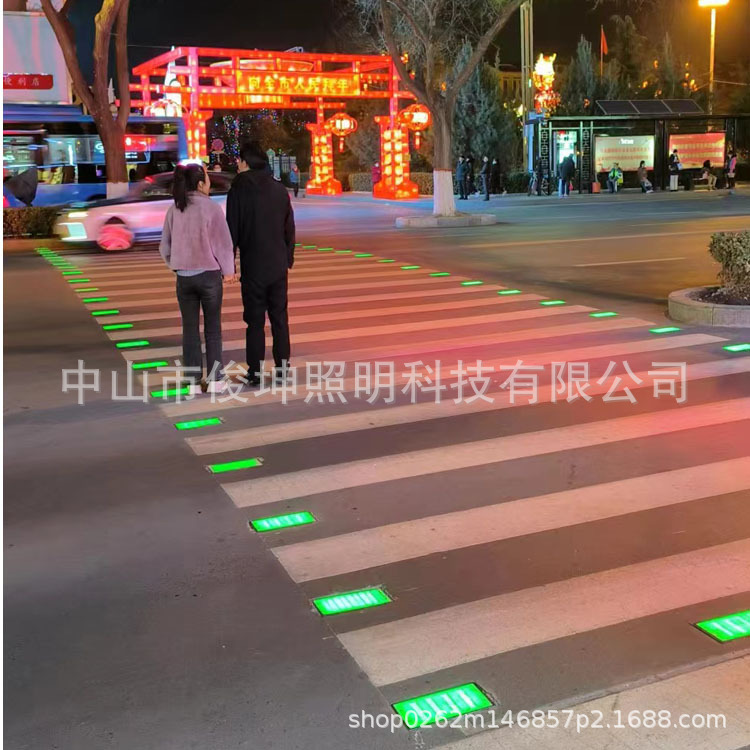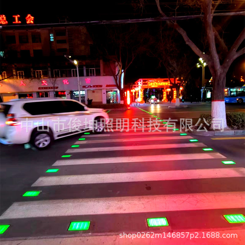 人行横道发光灯智慧斑马线地砖灯斑马线减速警示灯人行道指示道钉