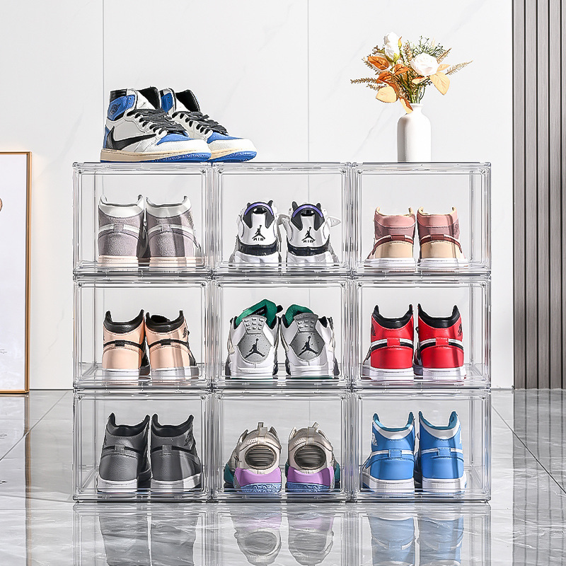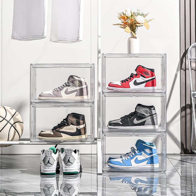 高透加厚防尘塑料鞋盒客厅磁吸鞋柜收纳鞋子收藏球鞋专用收纳箱