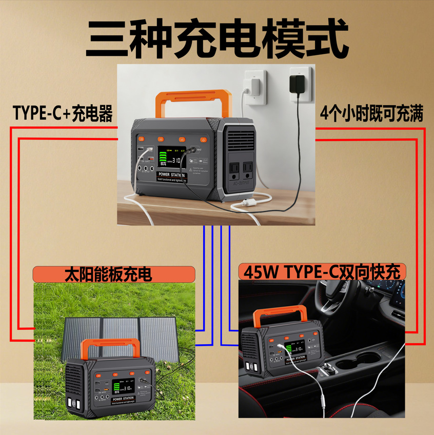 300W便携式户外移动电源270wh储能电源支持太阳能充电户外应急