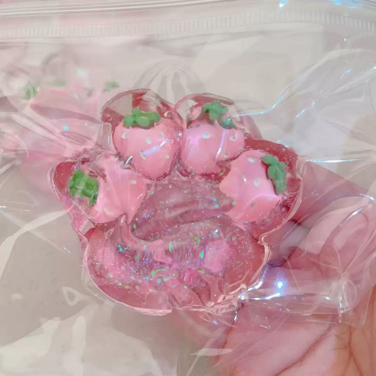 草莓猫爪捏捏乐仿硅胶草莓解压减压可爱猫爪子冰块捏捏乐小红书