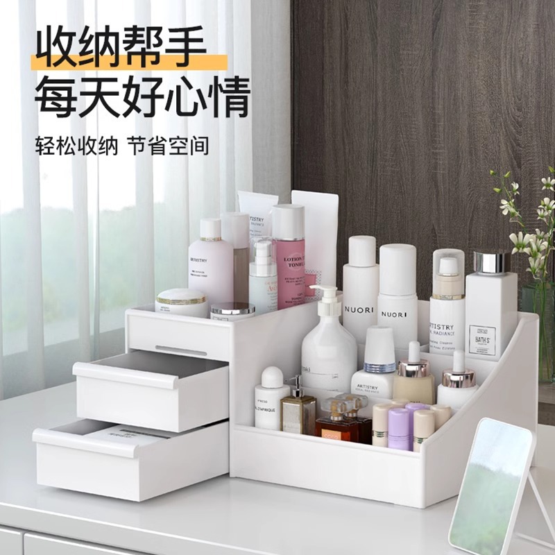 防尘塑料整理护肤品首饰盒置物架口红化妆品收纳盒化妆台大容量
