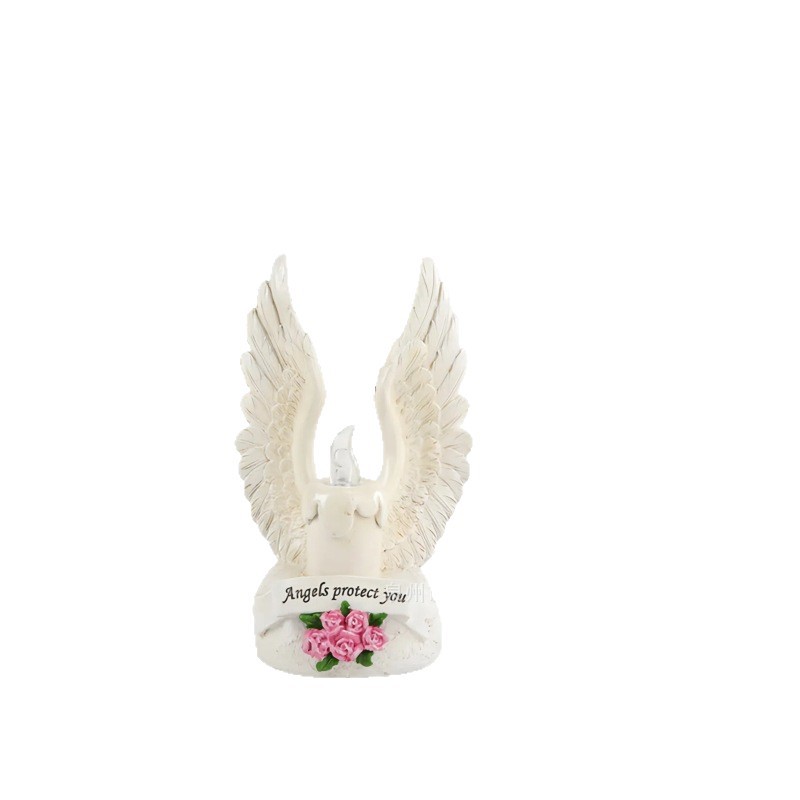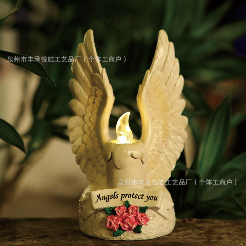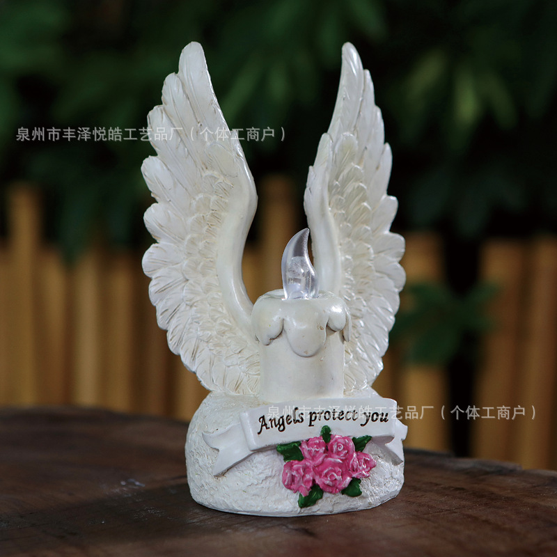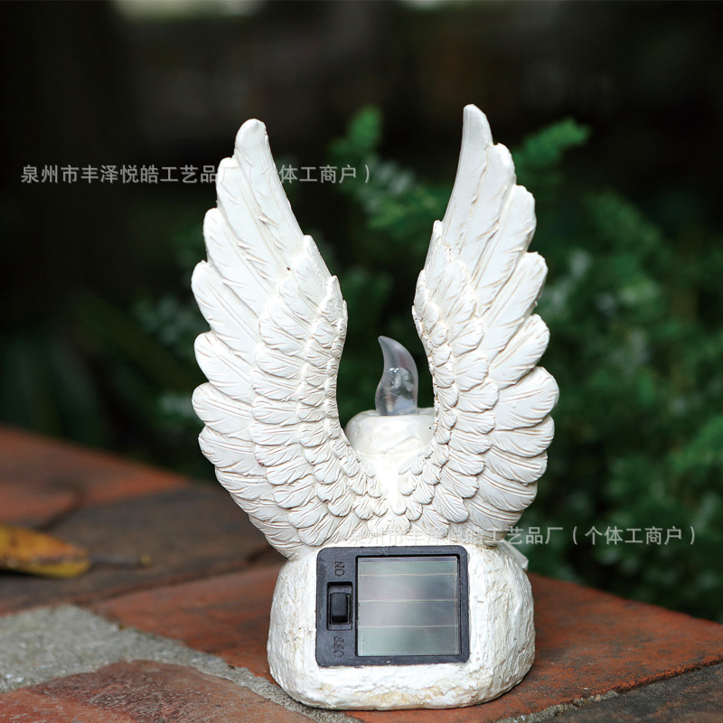 跨境新款太阳能蜡烛天使翅膀户外摆件庭院花园蜡烛发光树脂工艺品