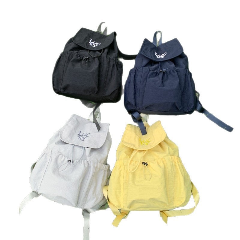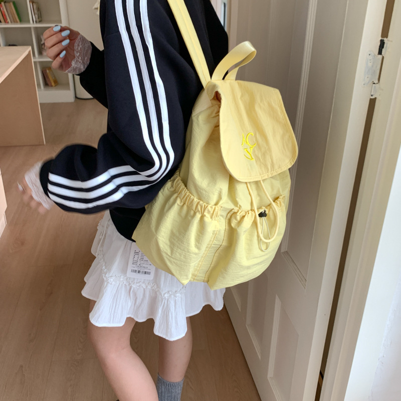 高颜值纯色大容量双肩包上课通勤书包登山旅行潮流休闲绳包盖背包