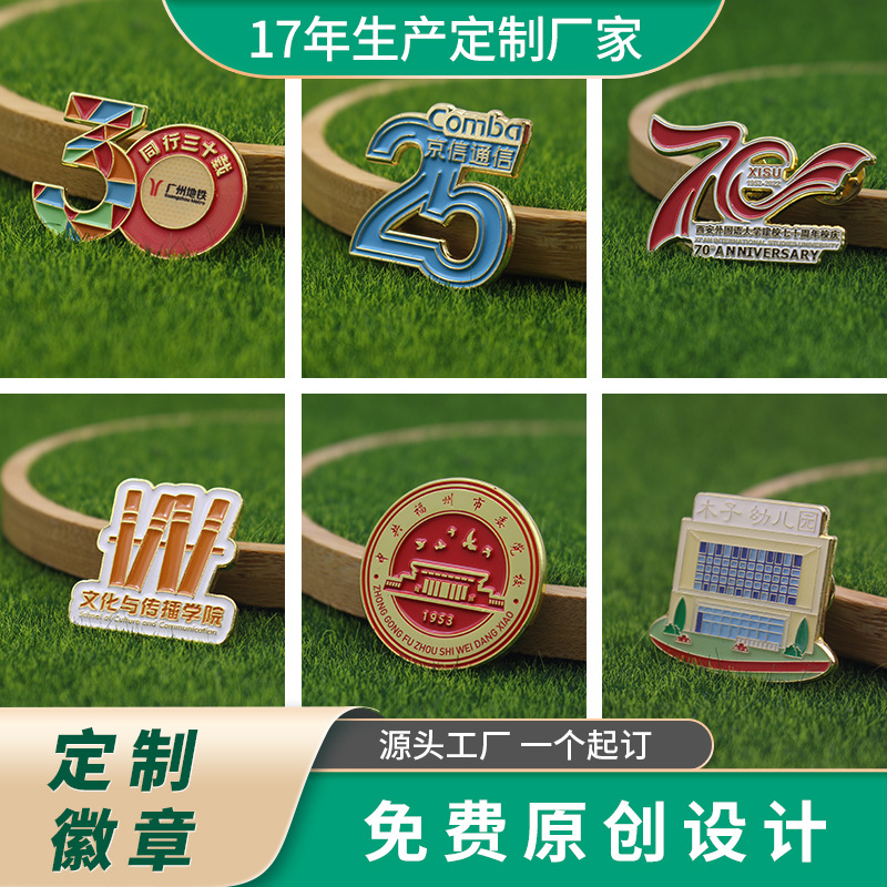 | 产品工艺 | 冲压徽章、镂空、镀金 / 镀银、立体浮雕、UV 印刷、滴塑、磨砂质感 | 使用场景 | 企业 LOGO 、员工胸牌、校园社团、赛事纪念、活动礼品、志愿者、粉丝应援、节日庆典章 |