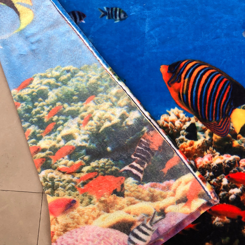 厂家供应珊瑚图案印花布料加工热转移涤纶布数码双面印花布料加工