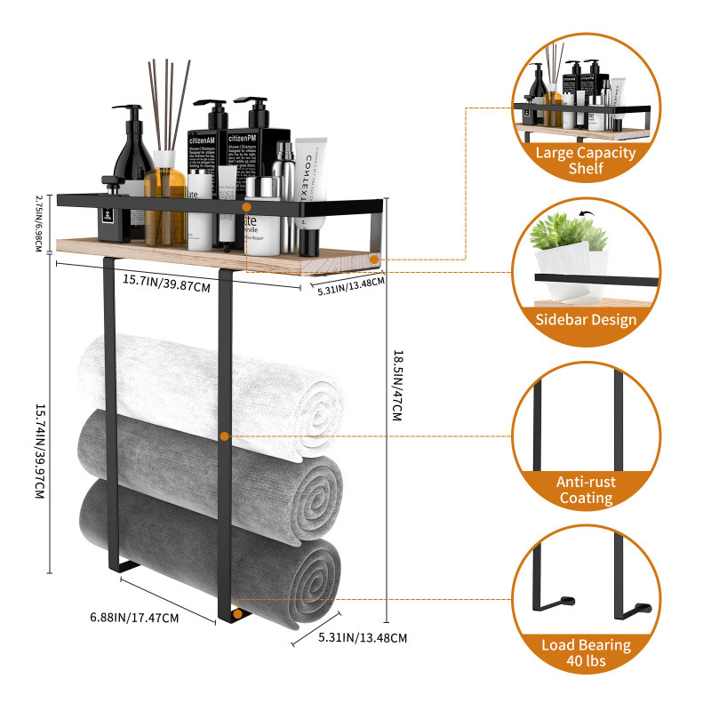 跨境铁艺木质家用浴室毛巾架卫生间壁挂式毛巾收纳整理挂架加工定