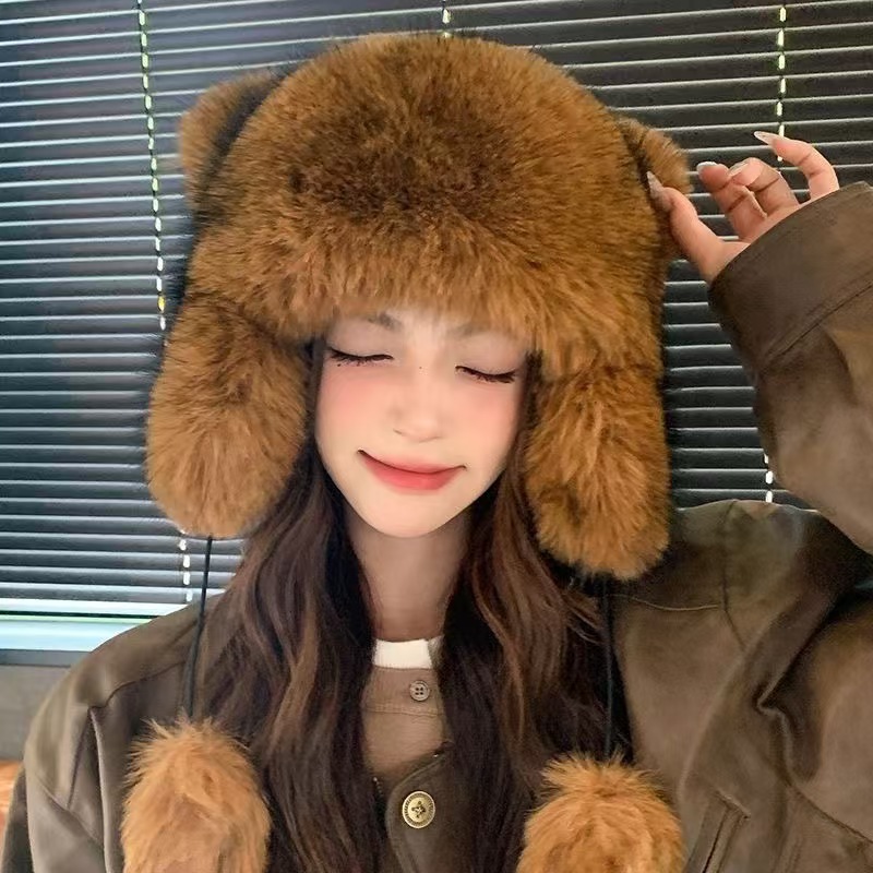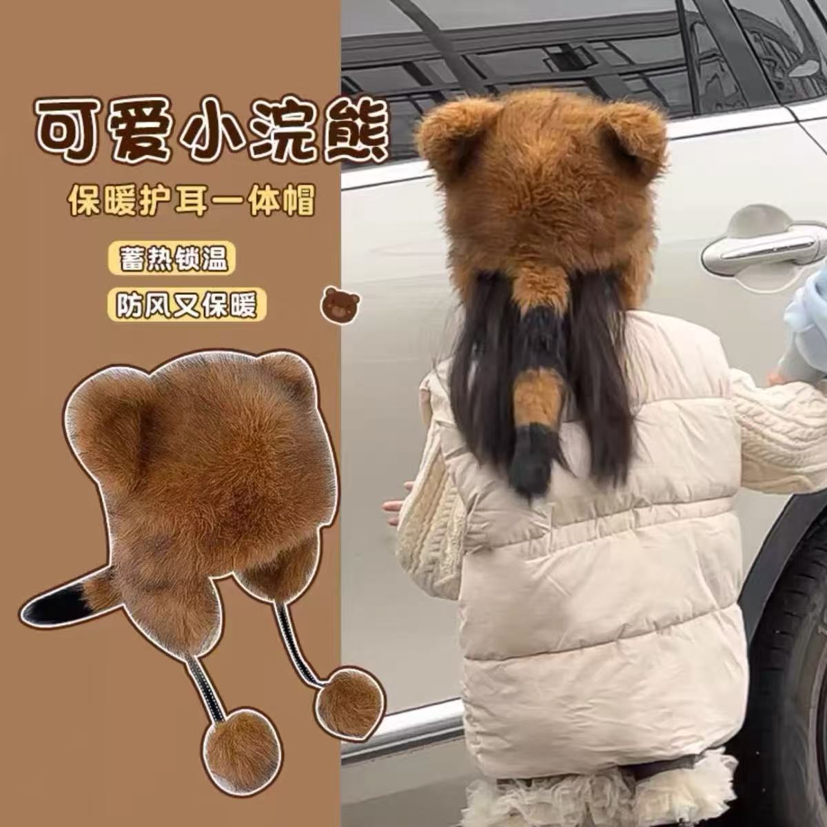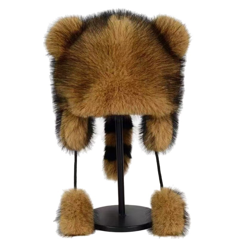 跨境小浣熊护耳帽仿美洲貉毛雷锋霸王帽冬季保暖亲子帽爆款