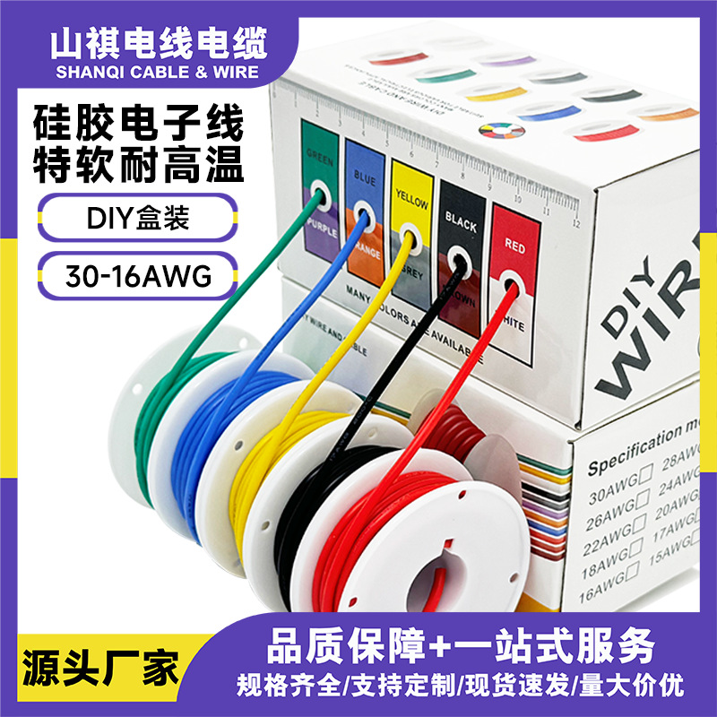 跨境专供DIY盒装特软耐高温硅胶线16AWG-30AWG航模线OK线PCB跳线